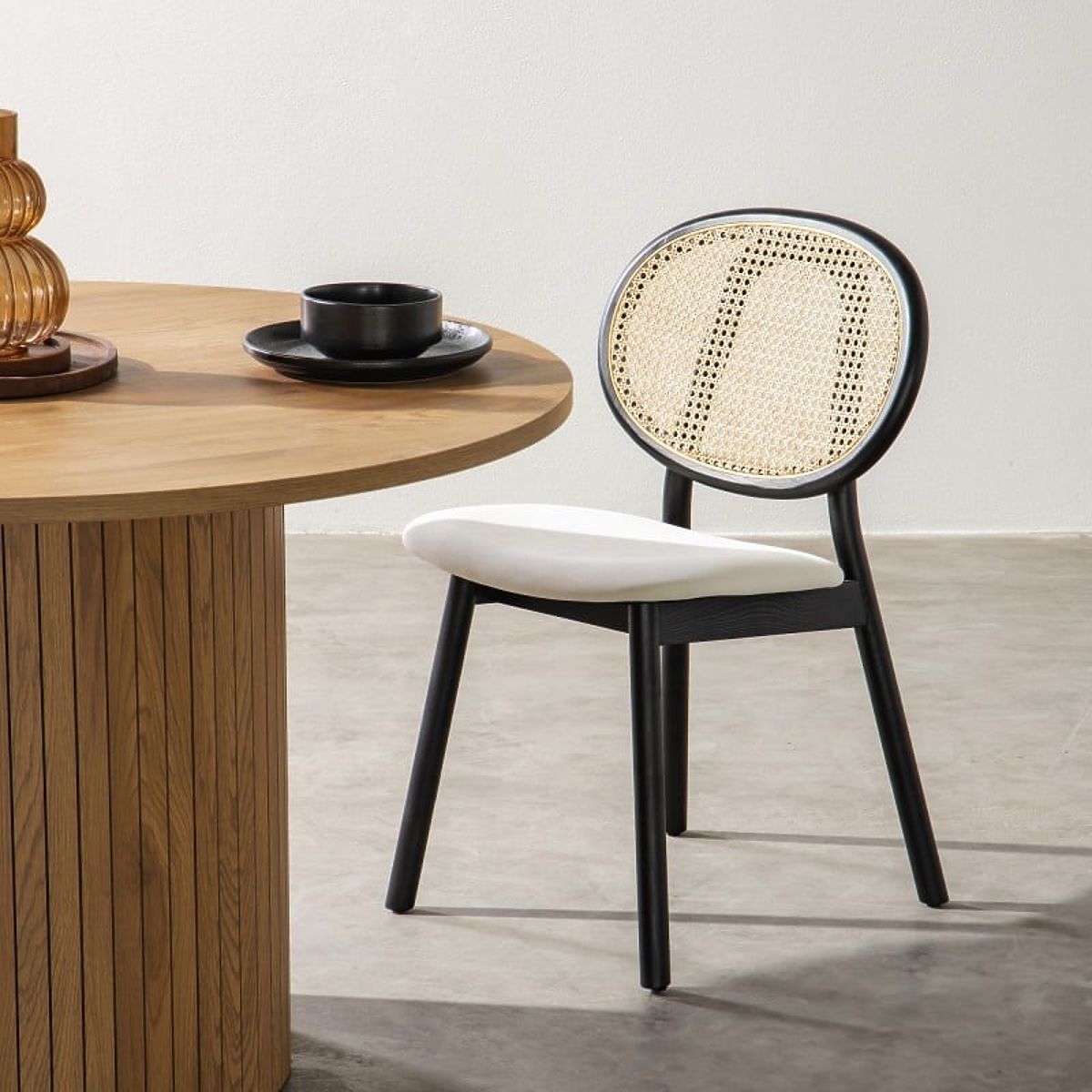 Lukahome.ro » Sufragerie și bucătărie / Scaune de sufragerie / Scaun din lemn Monet cu împletitură vieneză, ratan, catifea, negru/ecru
