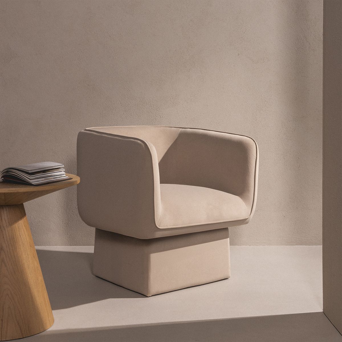 Scaun rotativ din velur bej deschis pentru confort și eleganță. .. mai mult