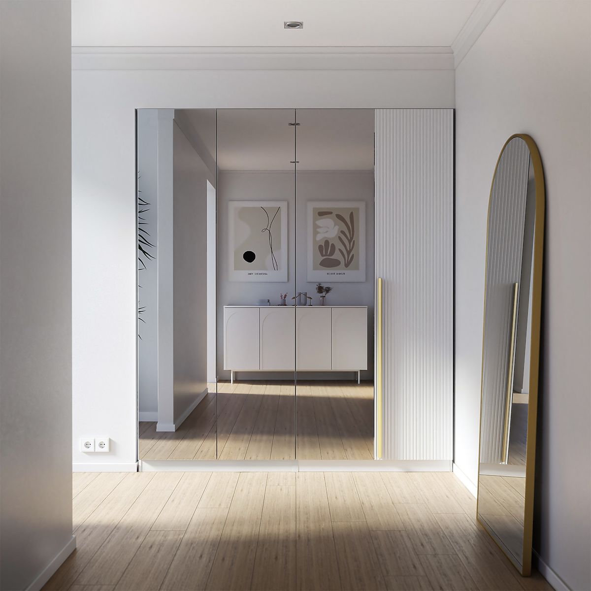 Dulap Neroli cu oglindă și caneluri decorative, alb. .. mai mult