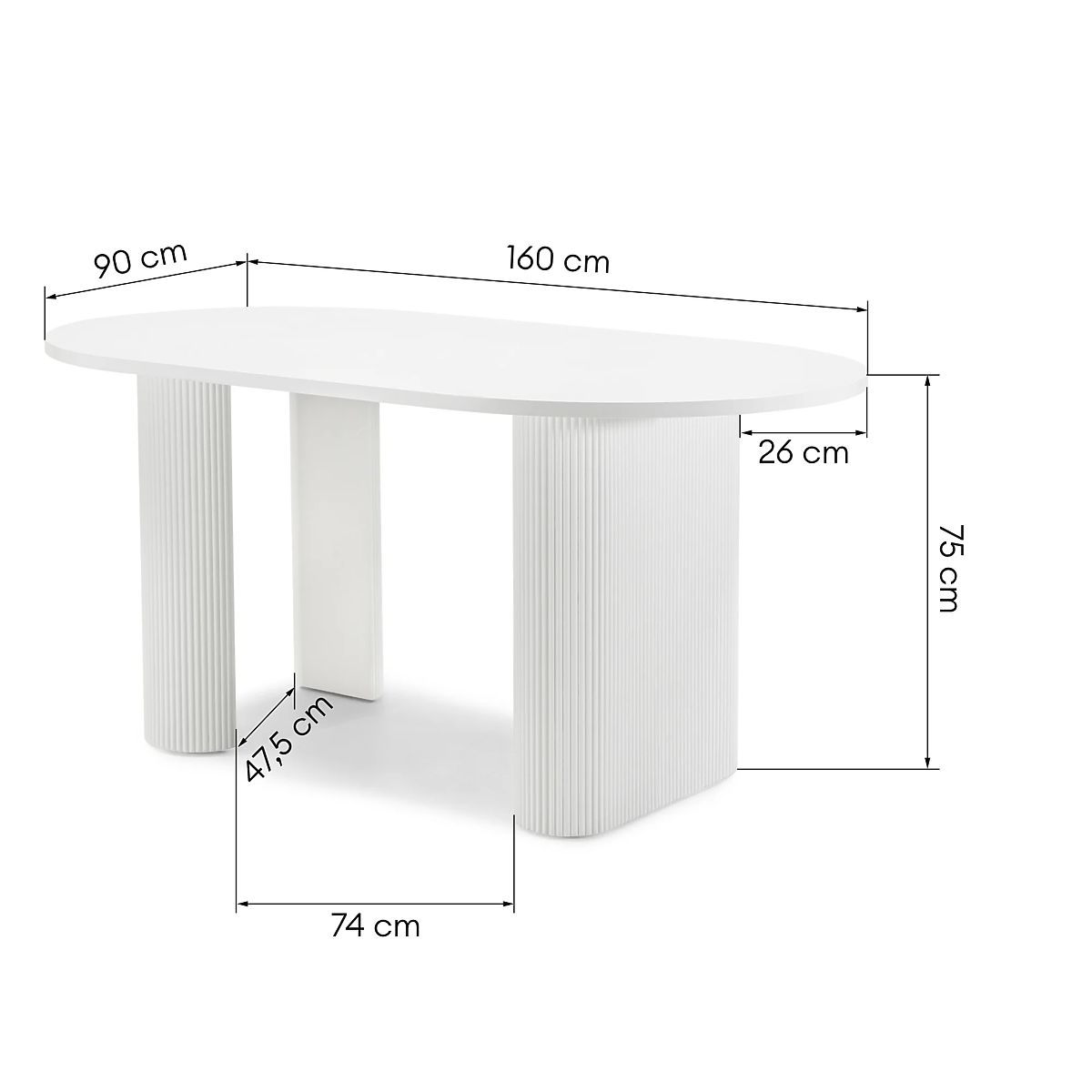Lukahome.ro » sufragerie și bucătărie / mese tabele / Masa extensibilă Audrey 160-240 cm, ovală, albă, cu caneluri, forme rotunjite
