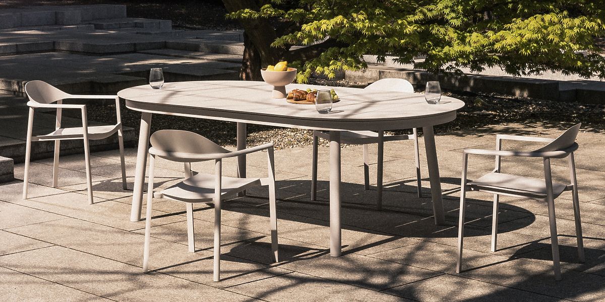 Masă de grădină extensibilă din aluminiu, bej deschis, 230-300 cm. .. mai mult