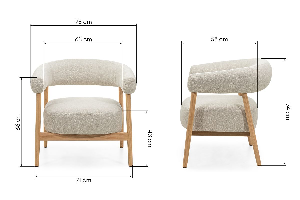Lukahome.ro » fotoliu și stând / fotoliu / Scaun/Fotoliu tapițat Montepulciano, bej deschis/lemn de stejar, rotunjit