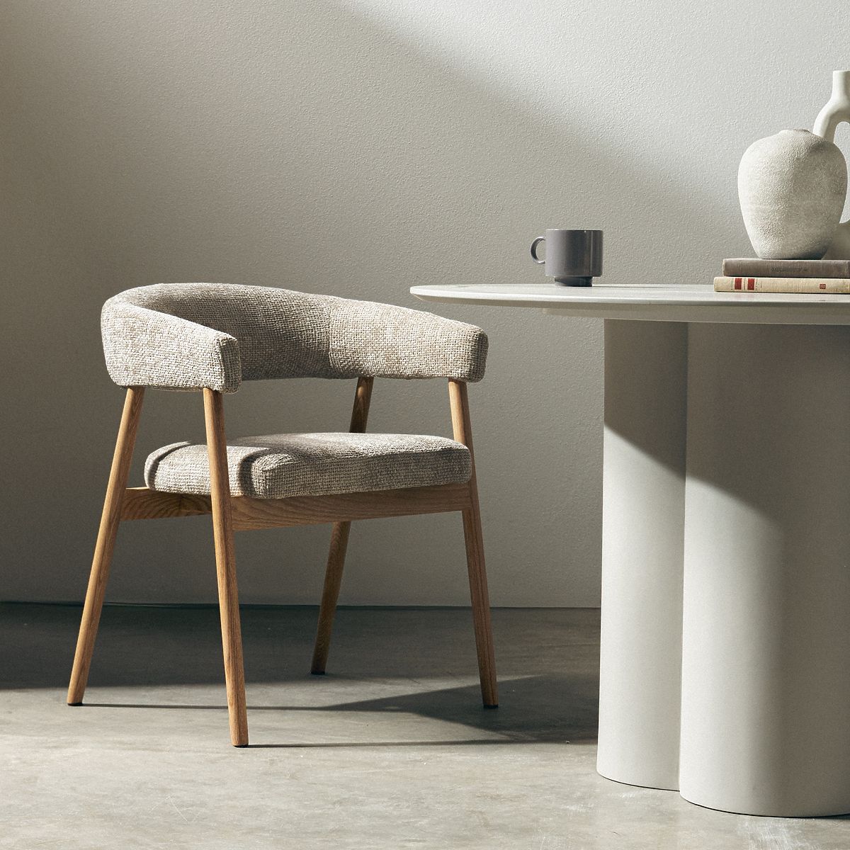 Lukahome.ro » sufragerie și bucătărie / mese scaun / Scaun tapițat Giovani, bej/lemn de stejar, rotunjit