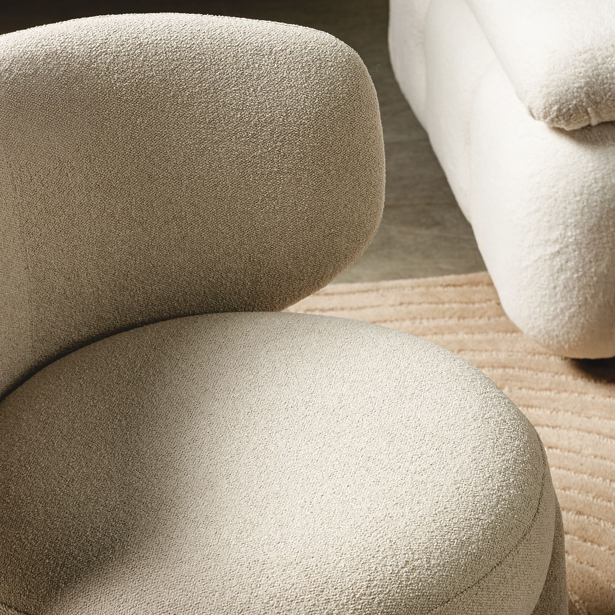 Fotoliu Elaine bej cu forme rotunjite și tapițerie boucle. .. mai mult