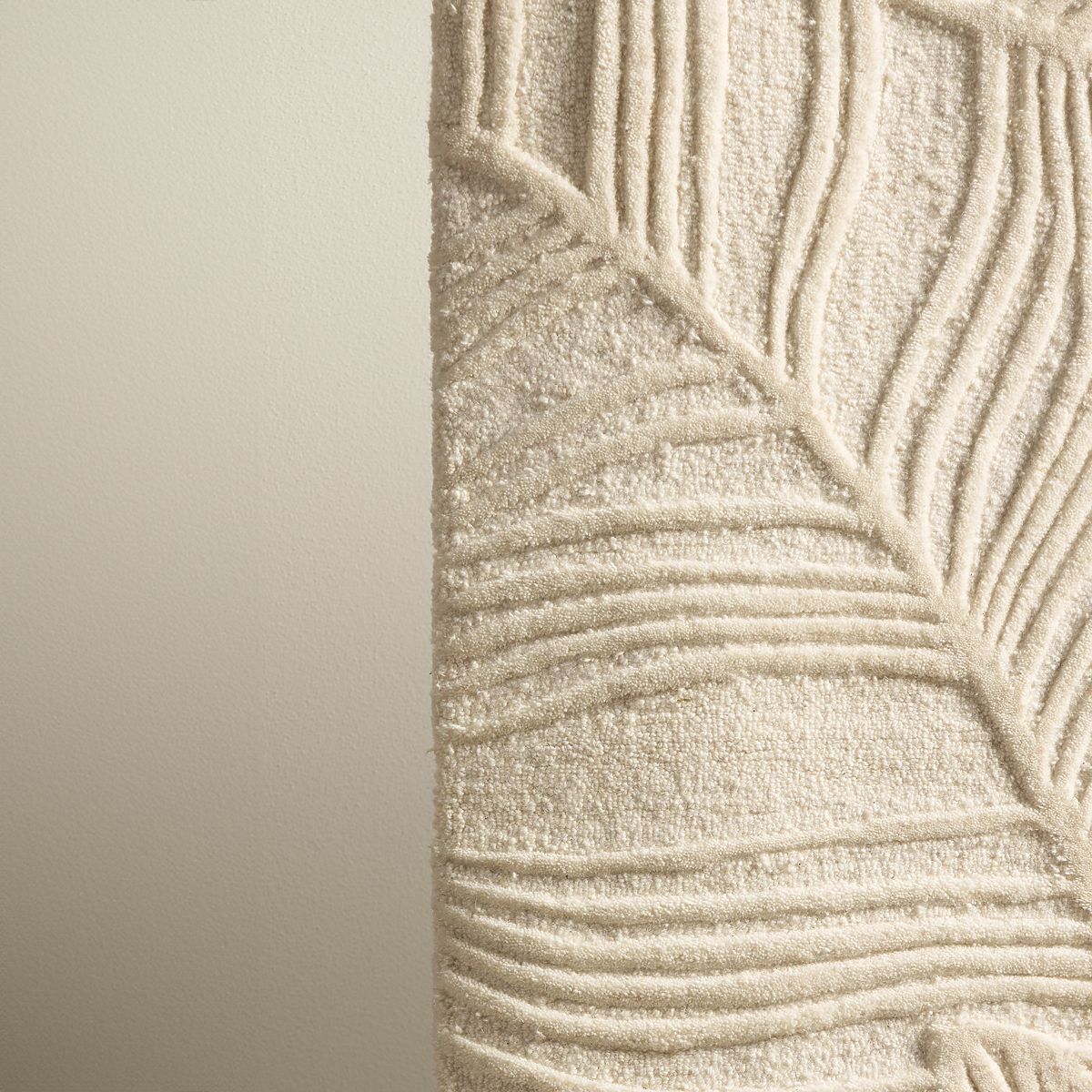 Covor Mona tuftat manual, din lână crem, cu model de frunze. .. mai mult