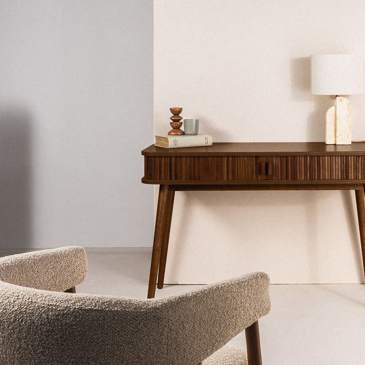 Birou elegant Clemente cu lamele decorative și spațiu de depozitare. .. mai mult