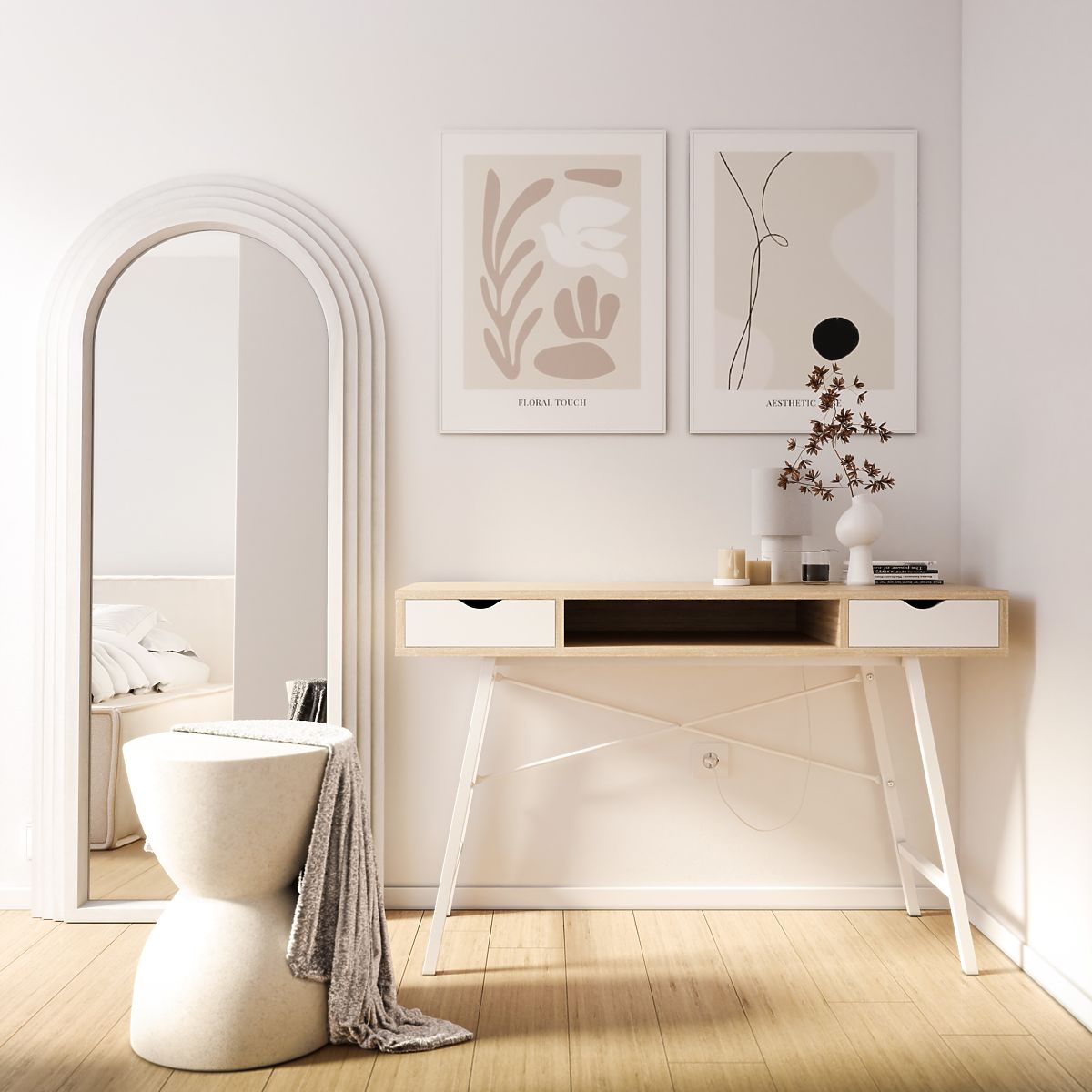 Oglindă decorativă Giovanni cu ramă din lemn albă, montare pe perete. .. mai mult