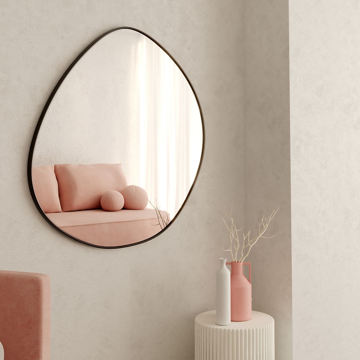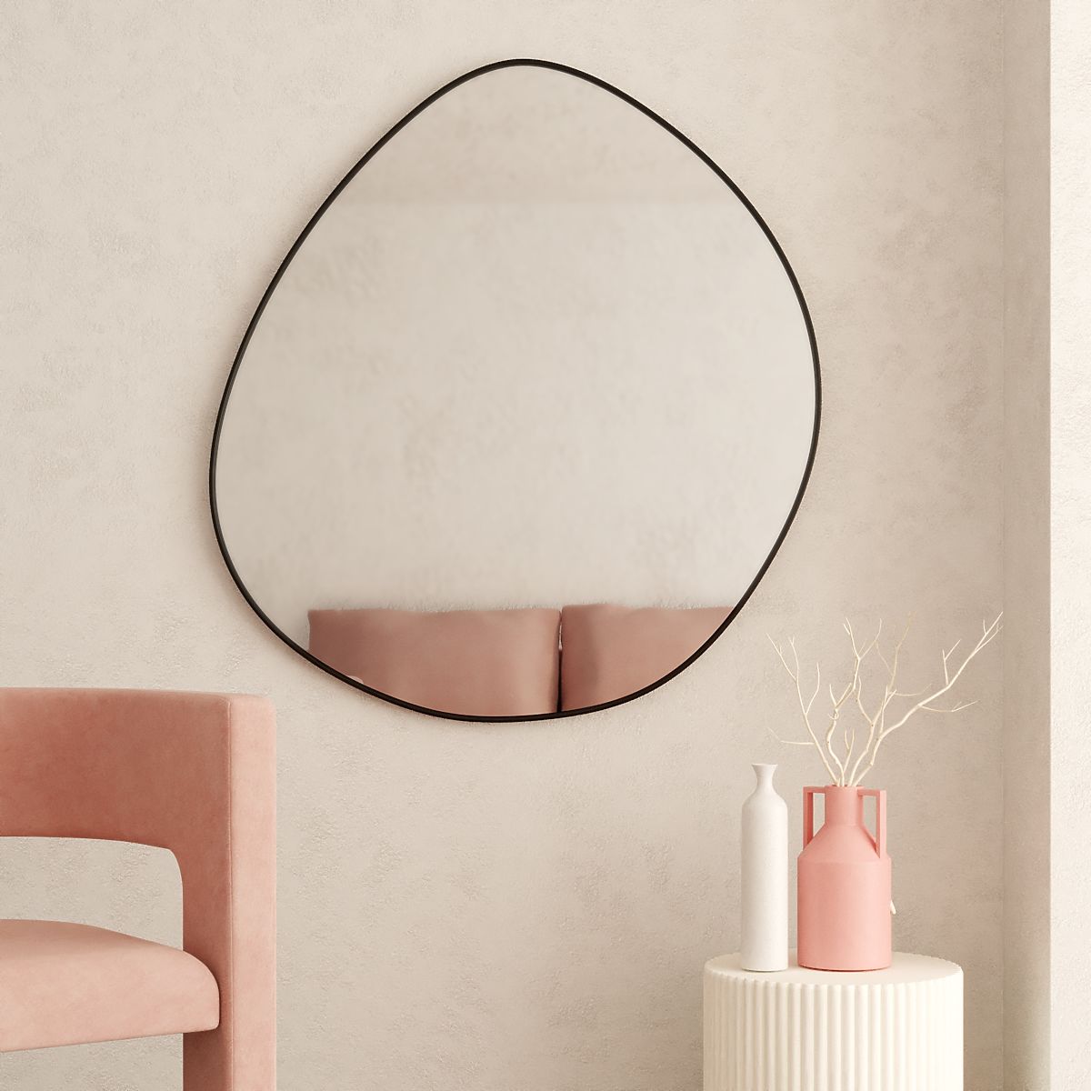 Oglindă Alonzo cu ramă neagră și formă neregulată, 64x60 cm. .. mai mult