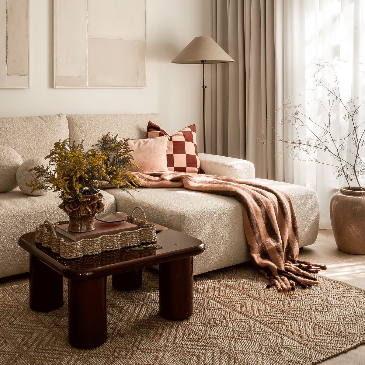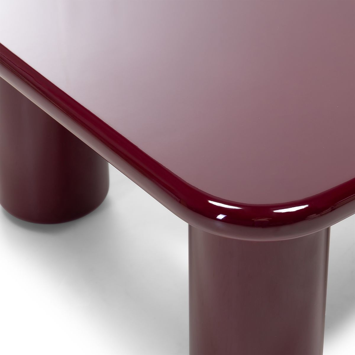 Masă de cafea burgundă cu luciu înalt și margini rotunjite. .. mai mult