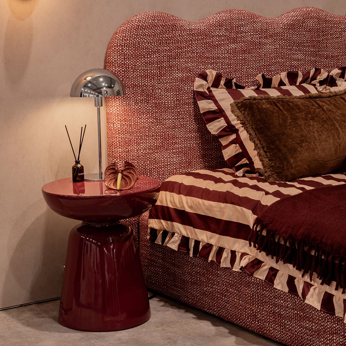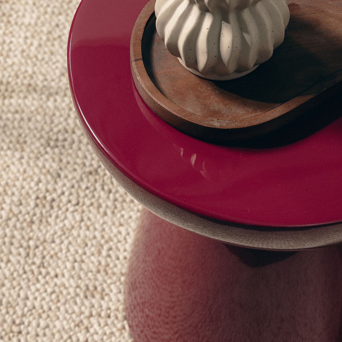 Măsuță laterală din oxid de magneziu cu luciu înalt și culoare burgundy-cireș. .. mai mult