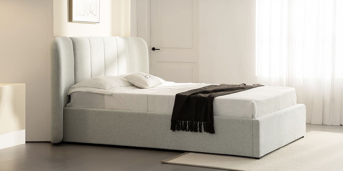 Pat de tapițerie Snoovia cu somieră și spațiu de depozitare, bej deschis. .. mai mult