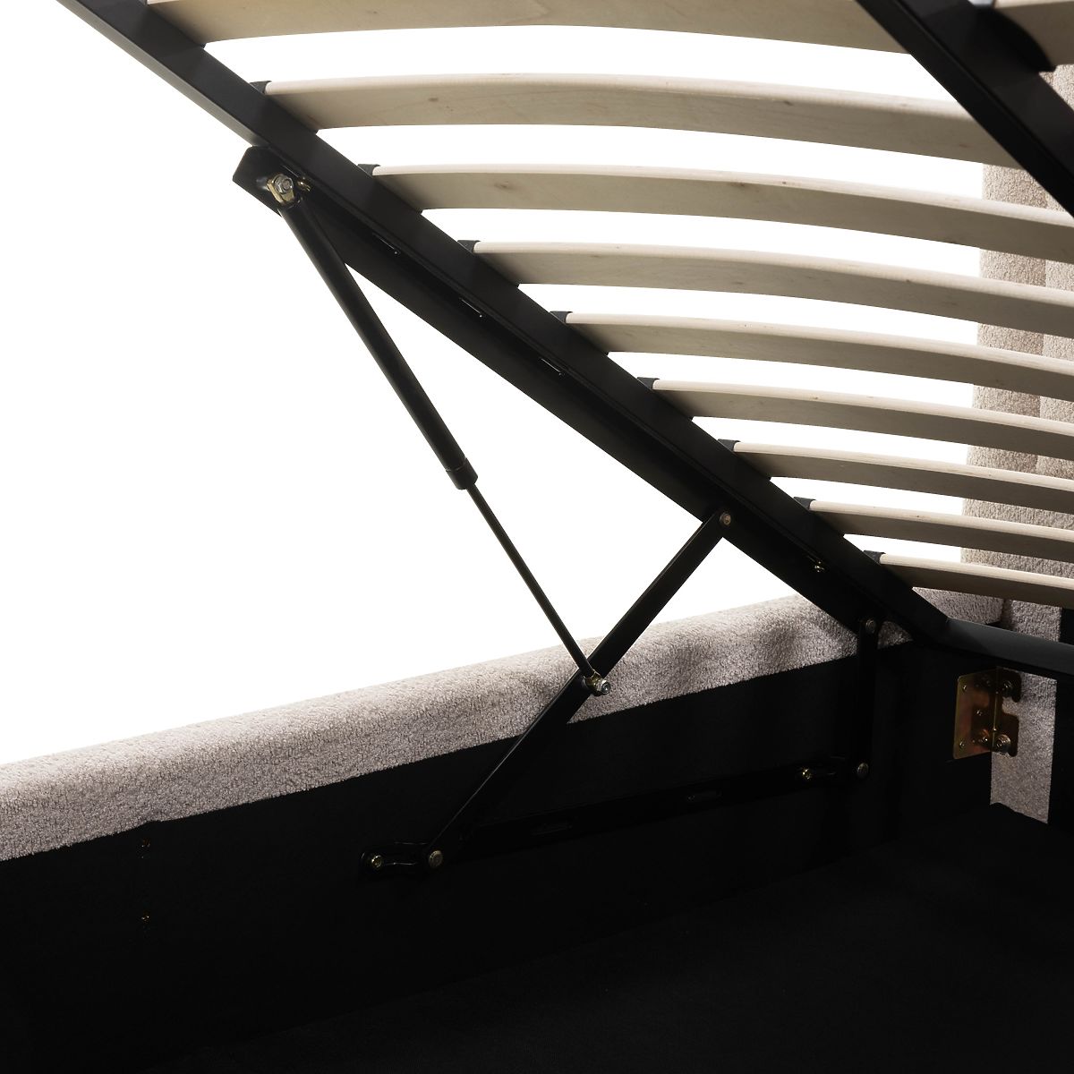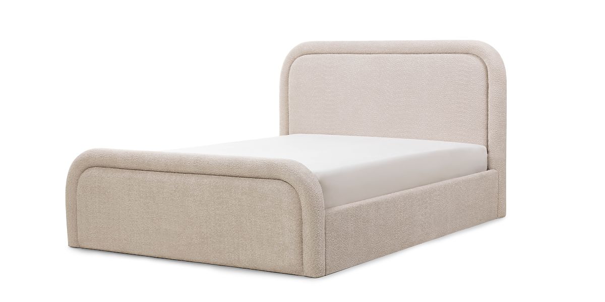 Pat tapițat Ovoid 140x200 cm, cu somieră și spațiu de depozitare, rotunjit, bej