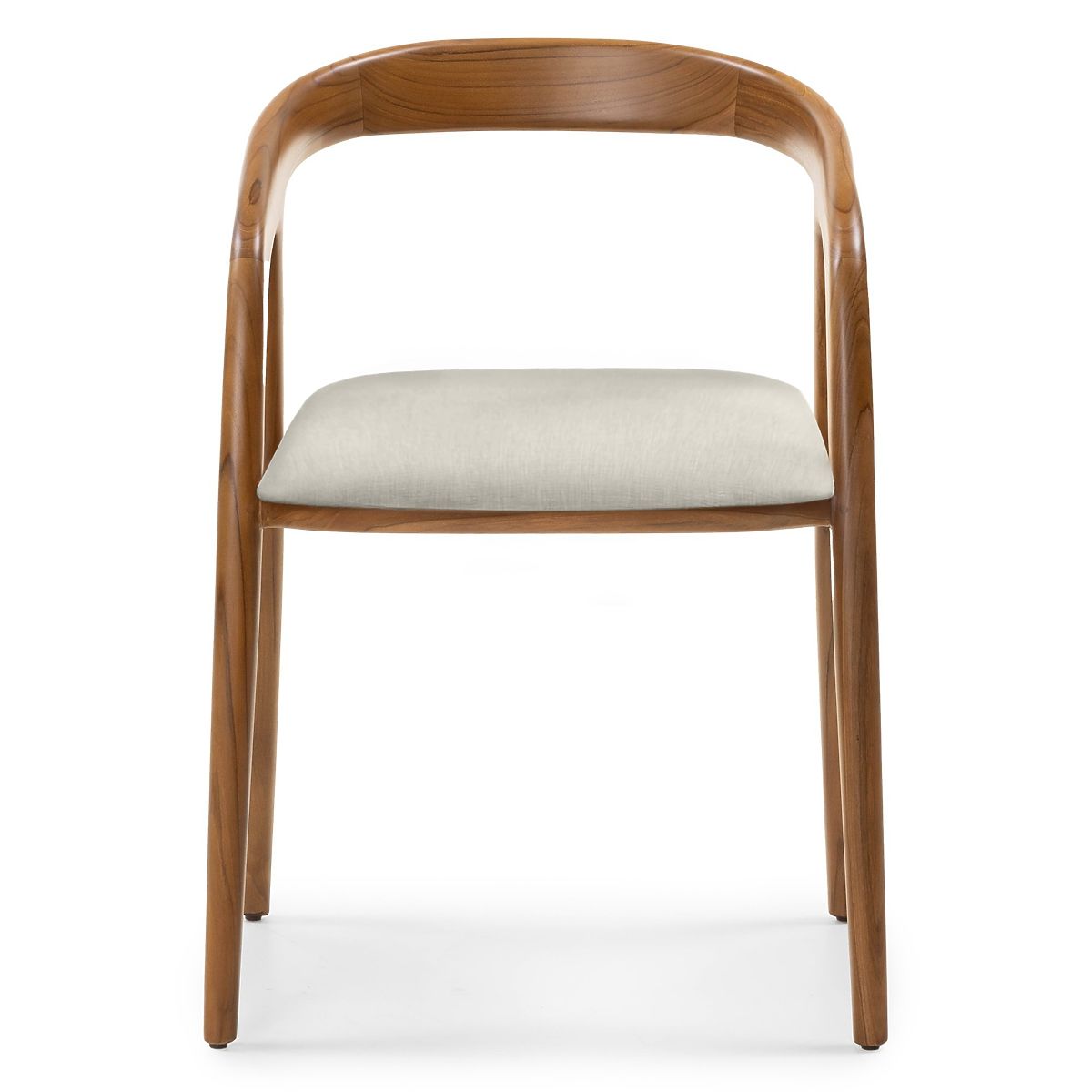 Scaun din lemn de tec cu design rotunjit și șezut crem. .. mai mult