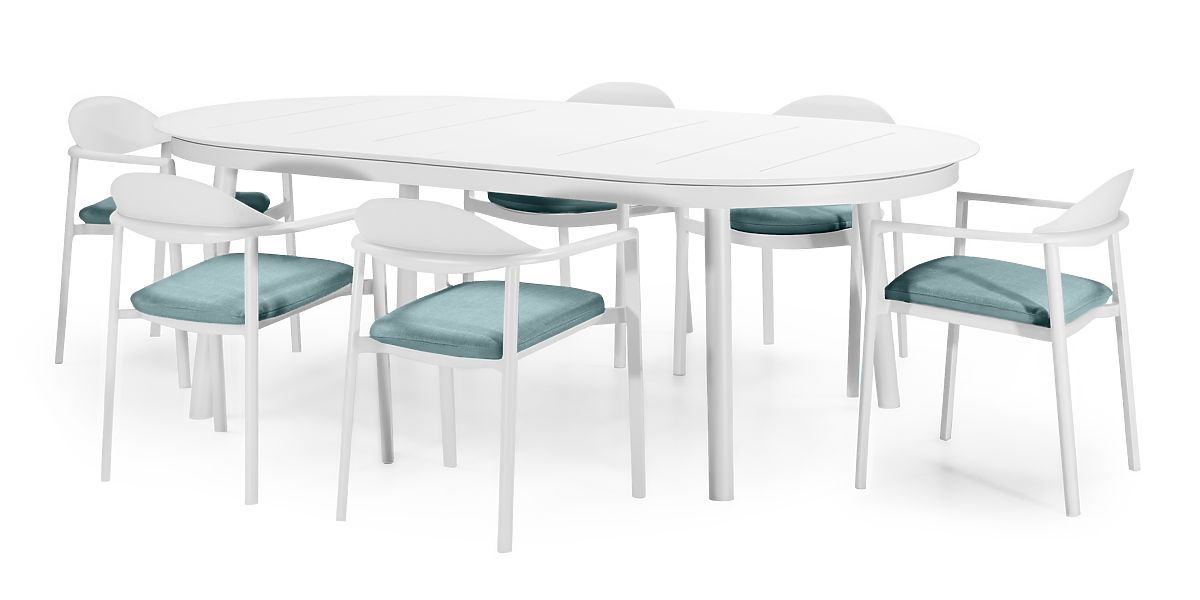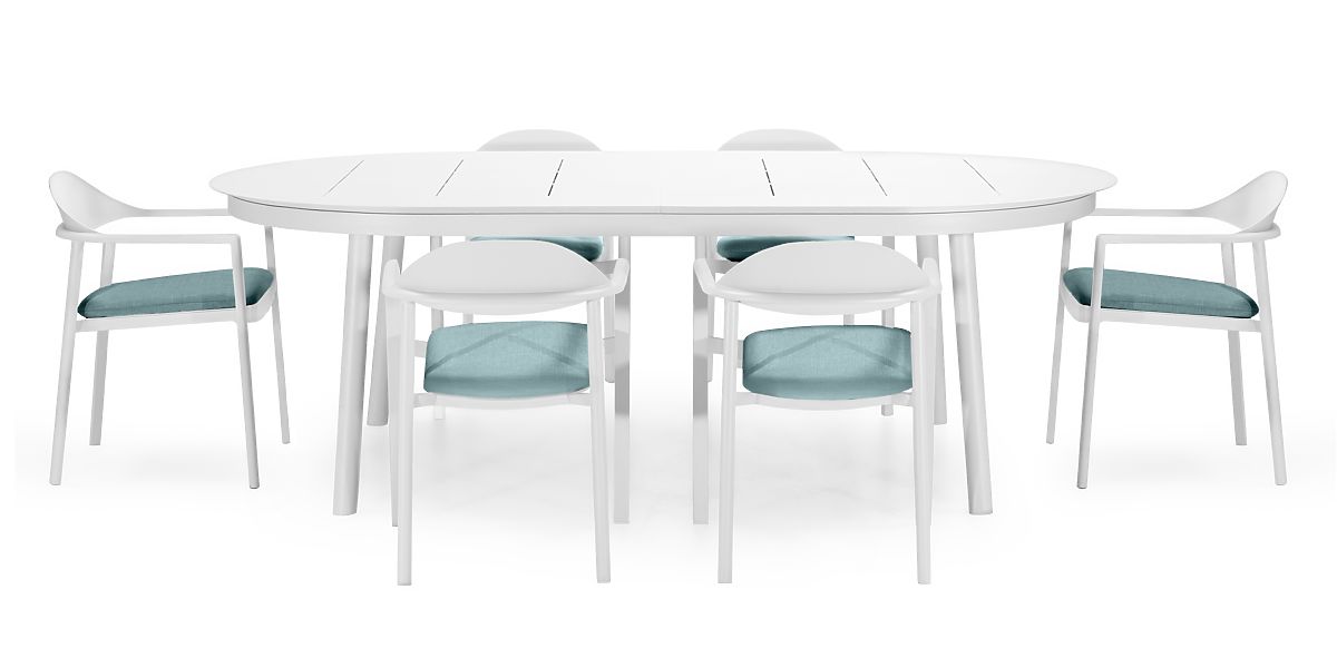 Lukahome.ro » grădină / grădină mobilier / Set de grădină Marinelli, masă extensibilă 230-300 cm + 6 scaune, aluminiu, alb