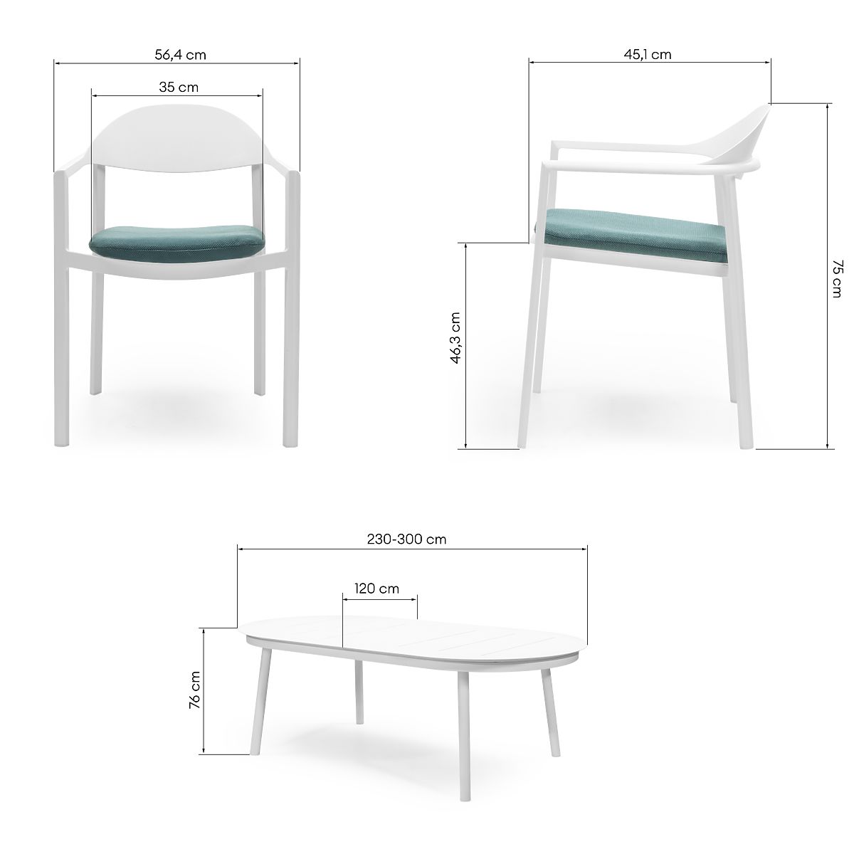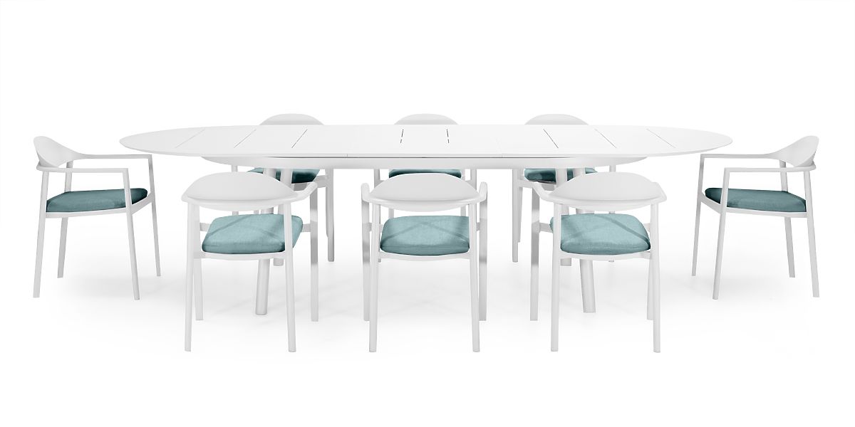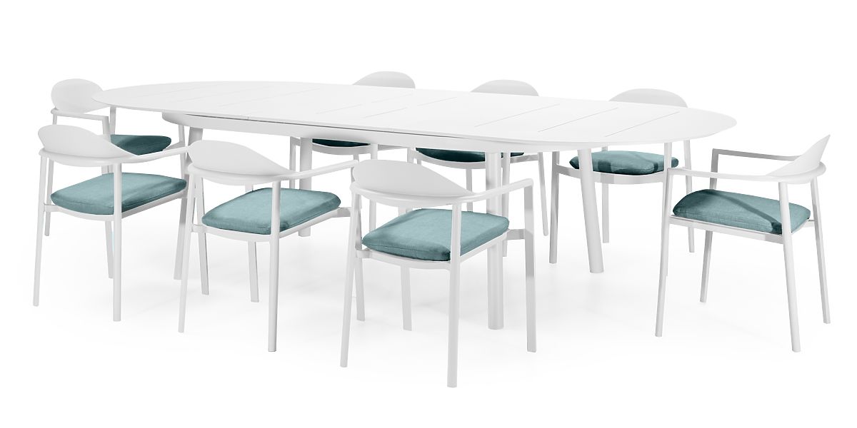 Lukahome.ro » Mobilier de grădină / Seturi de grădină / Set de grădină Marinelli, masă extensibilă 230-300 cm + 8 scaune, aluminiu, alb