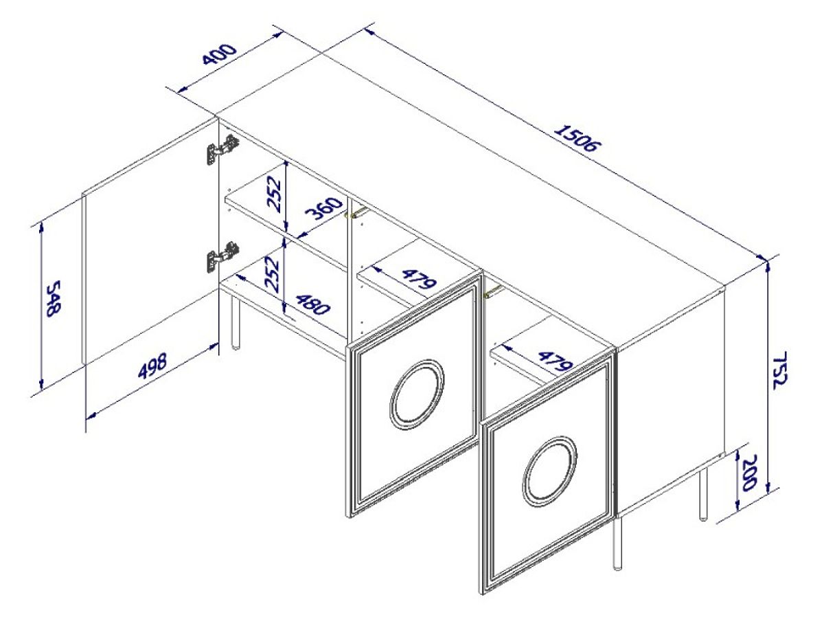 Comodă cu dimensiuni 75x150x42 cm, sistem PUSH - CLICK. .. mai mult