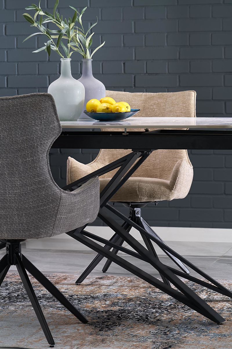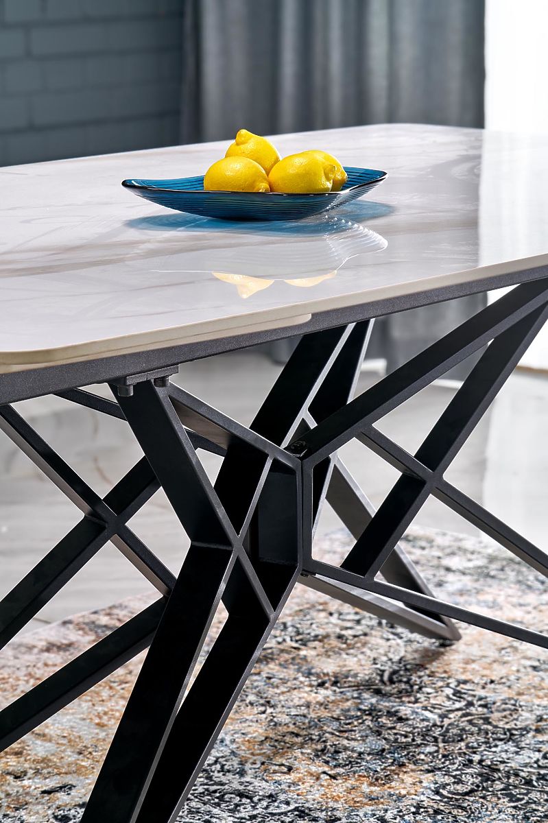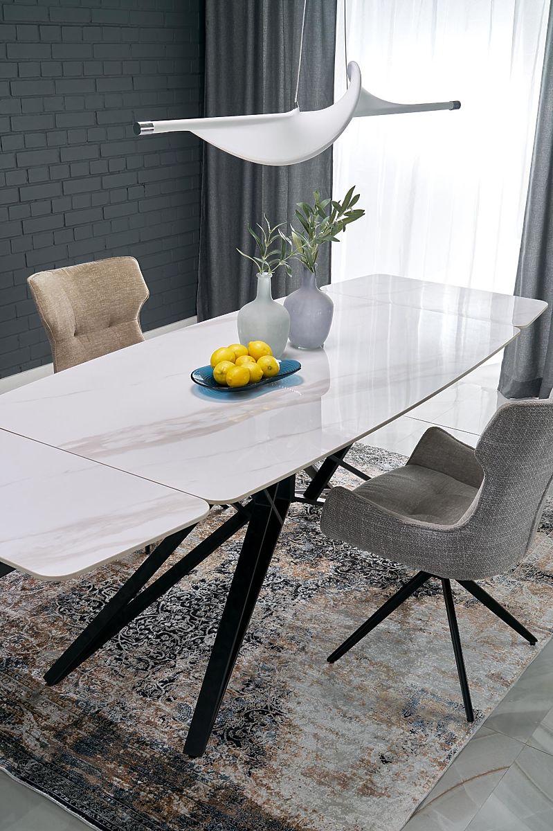 Lukahome.ro » sufragerie și bucătărie / mese tabele / Masa extensibilă ALFREDO, marmură albă / negru (2p=1buc)