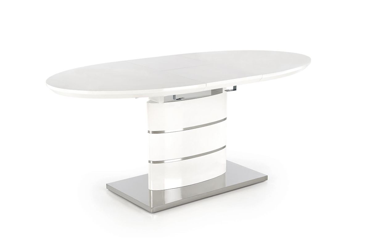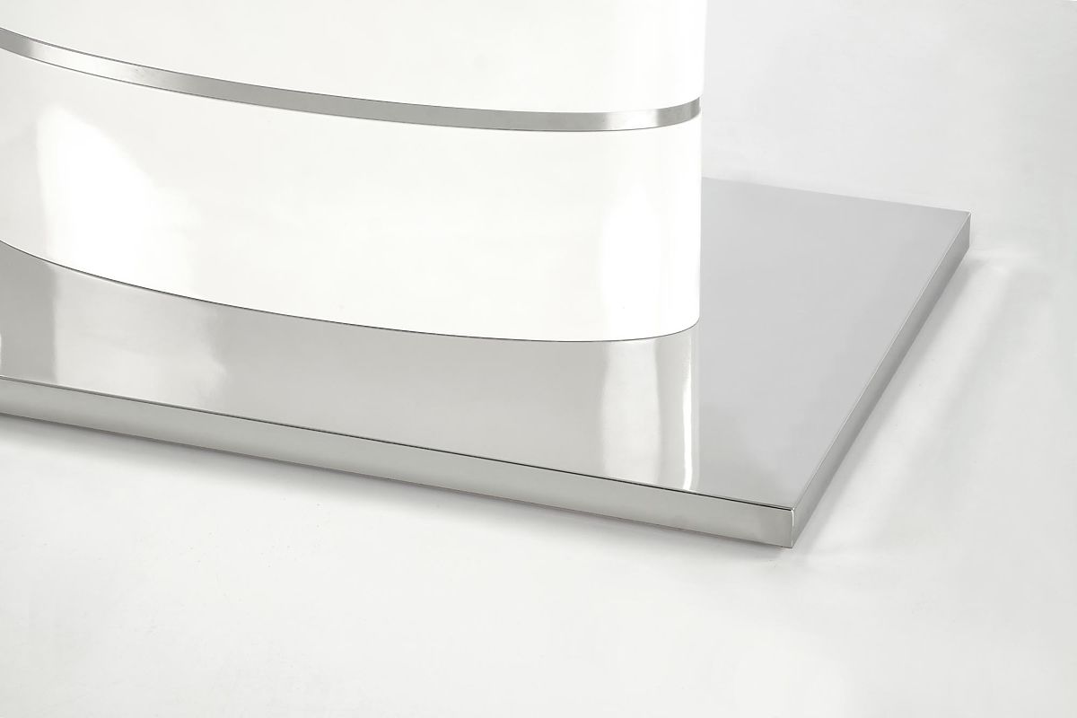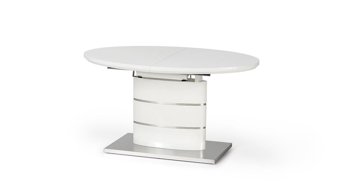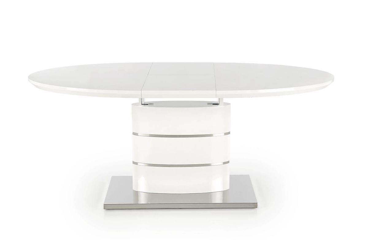 Masă extensibilă albă din MDF lăcuit și oțel inoxidabil. .. mai mult