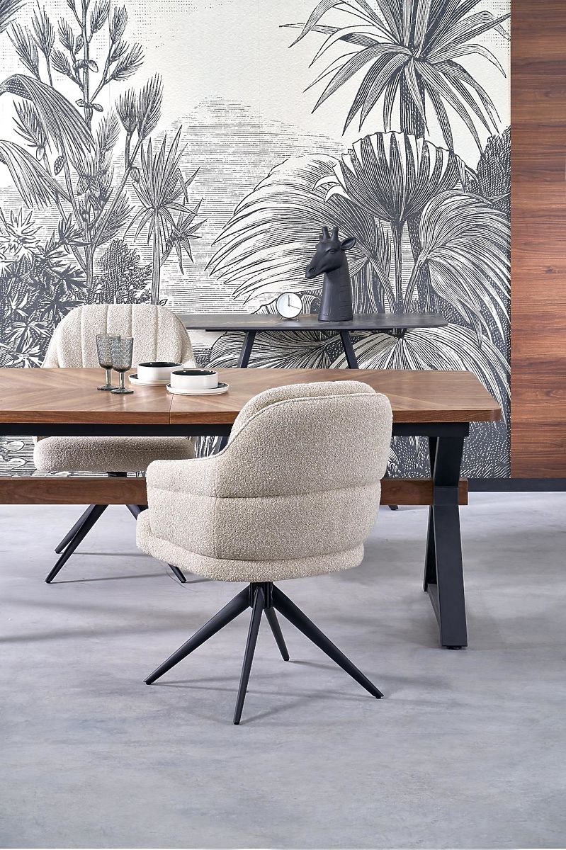 Masă extensibilă din MDF și furnir natural, cu picioare negre. .. mai mult