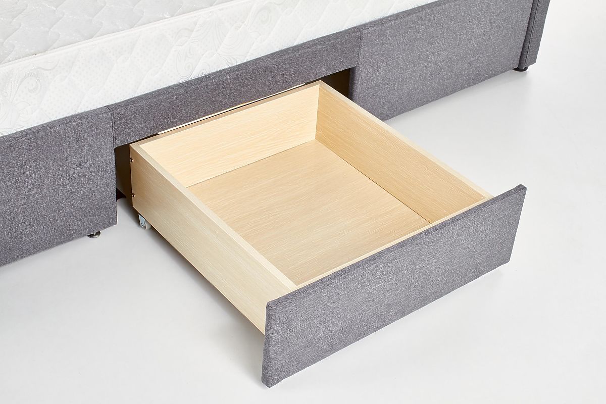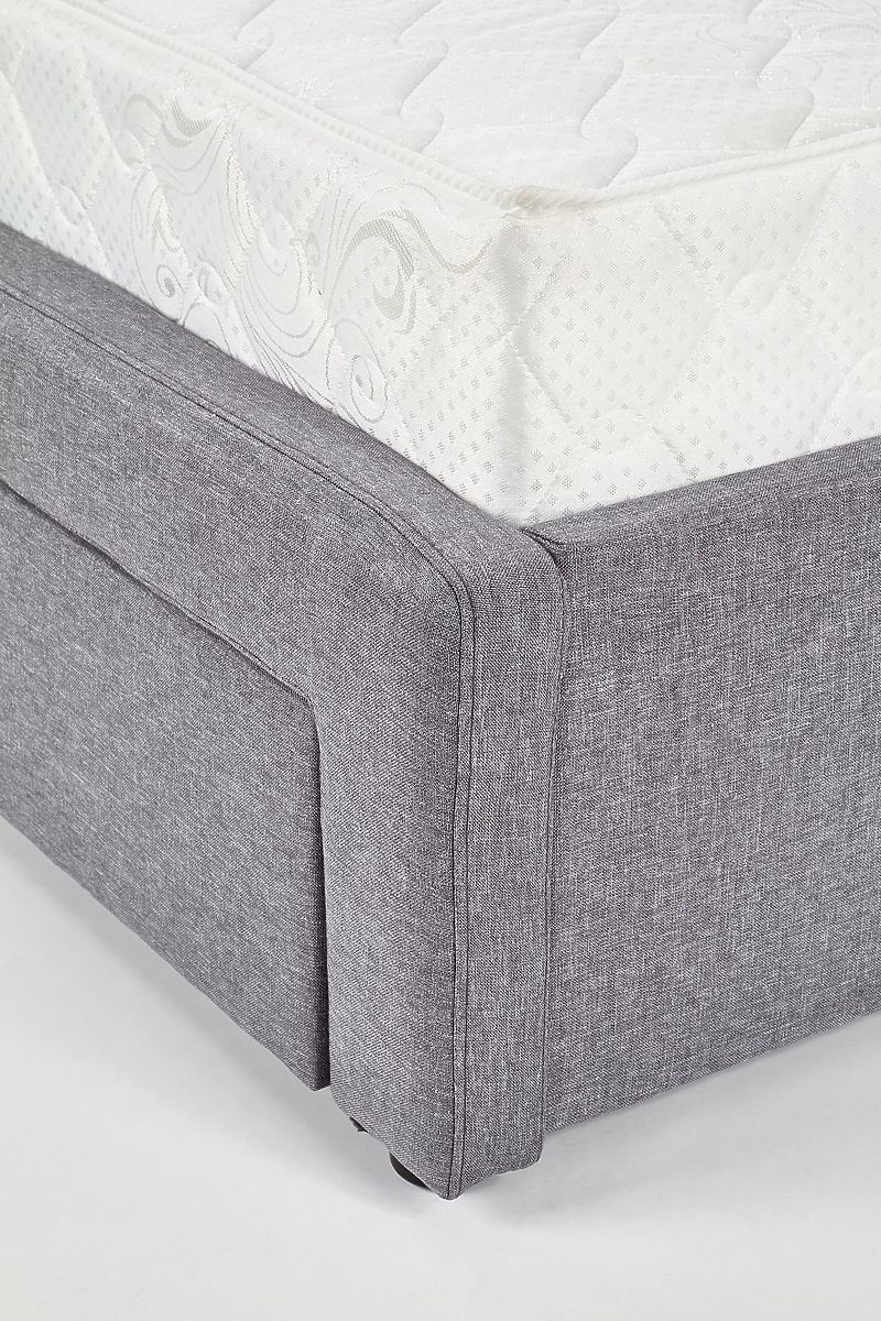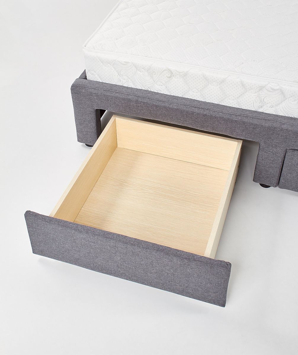Pat cu sertare, material textil gri și lemn masiv negru. .. mai mult