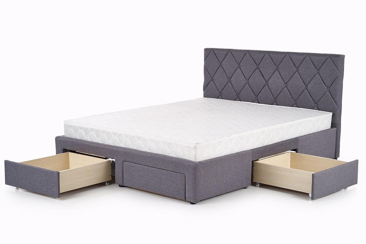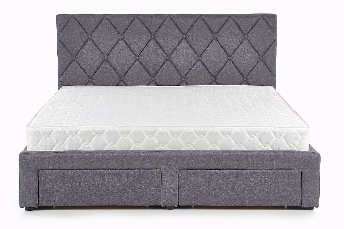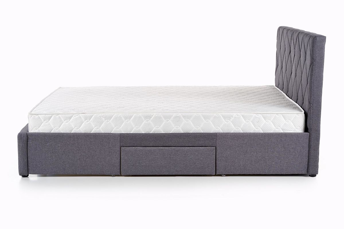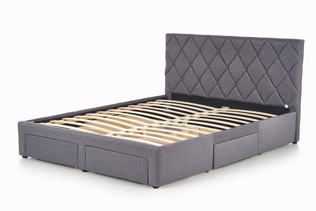 Pat cu sertare, material textil gri și lemn masiv negru. .. mai mult