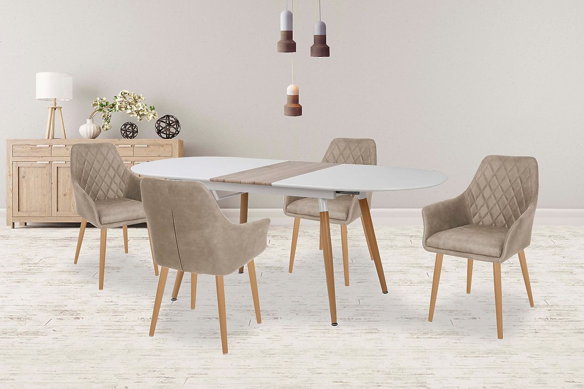 Lukahome.ro » Sufragerie și bucătărie / Mese de sufragerie / Masa extensibilă CALIBER alb / stejar san remo (1p=1buc)