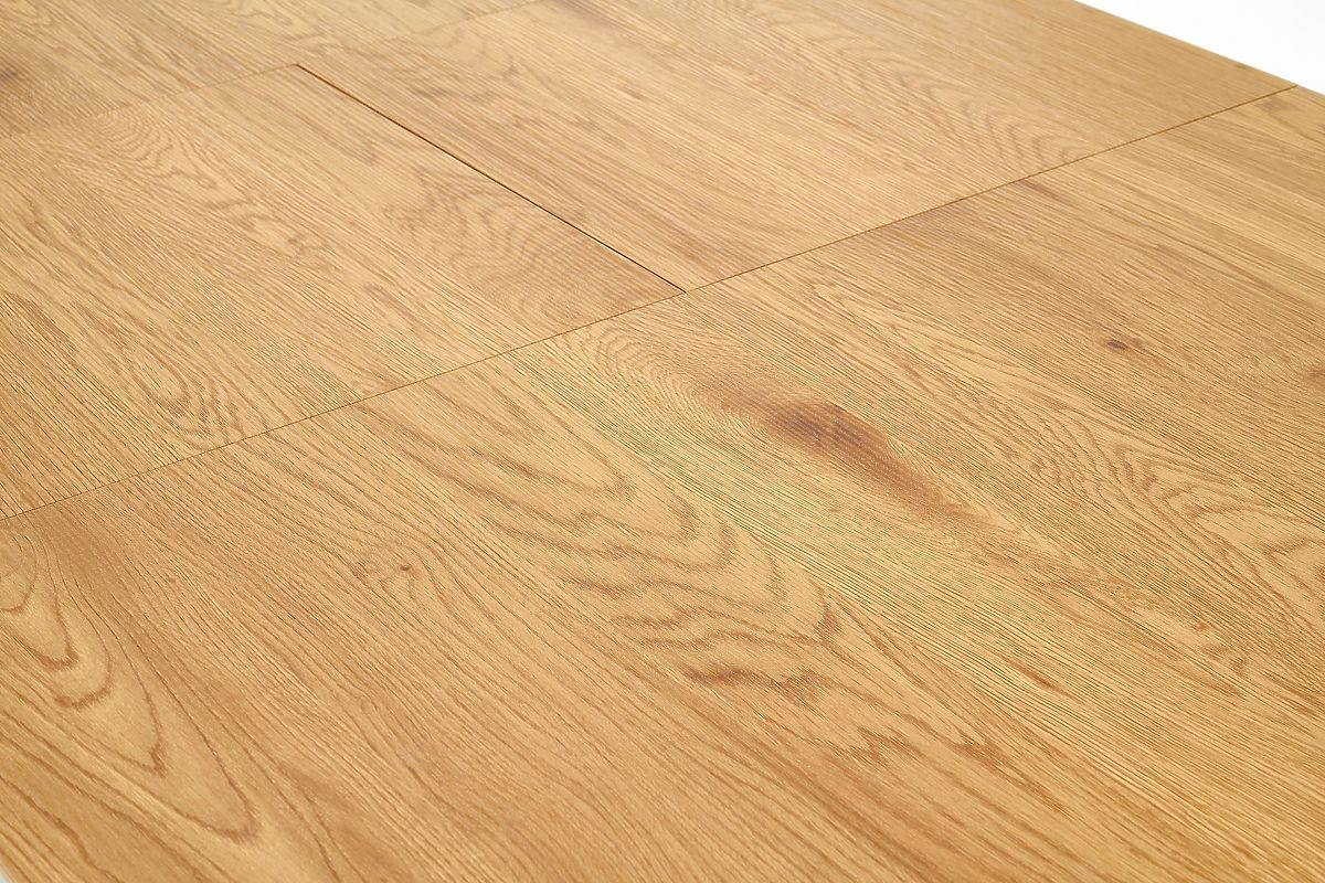Masă extensibilă din MDF furniruit și oțel, stejar auriu și negru. .. mai mult