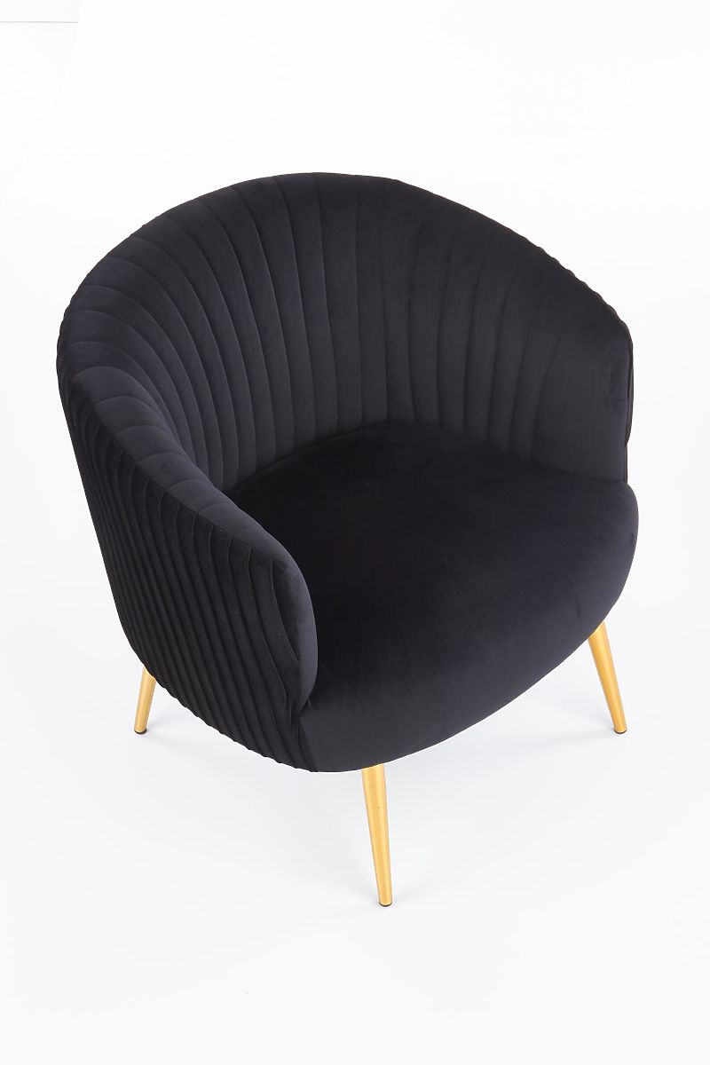 Fotoliu de relaxare CROWN cu tapițerie neagră și picioare aurii. .. mai mult