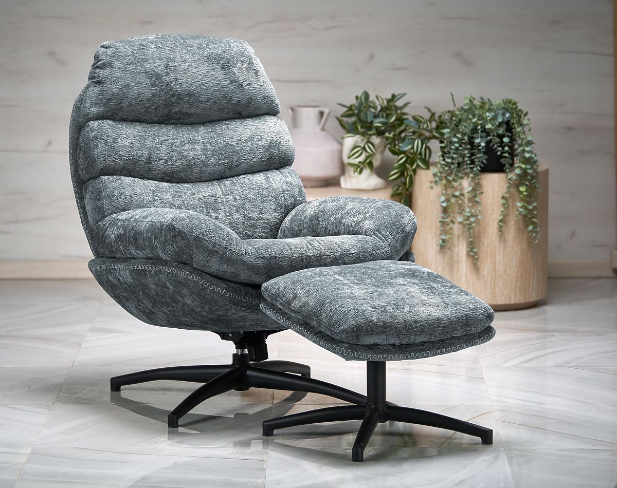 Fotoliu DARIO albastru cu taburet și funcție de balansare. .. mai mult