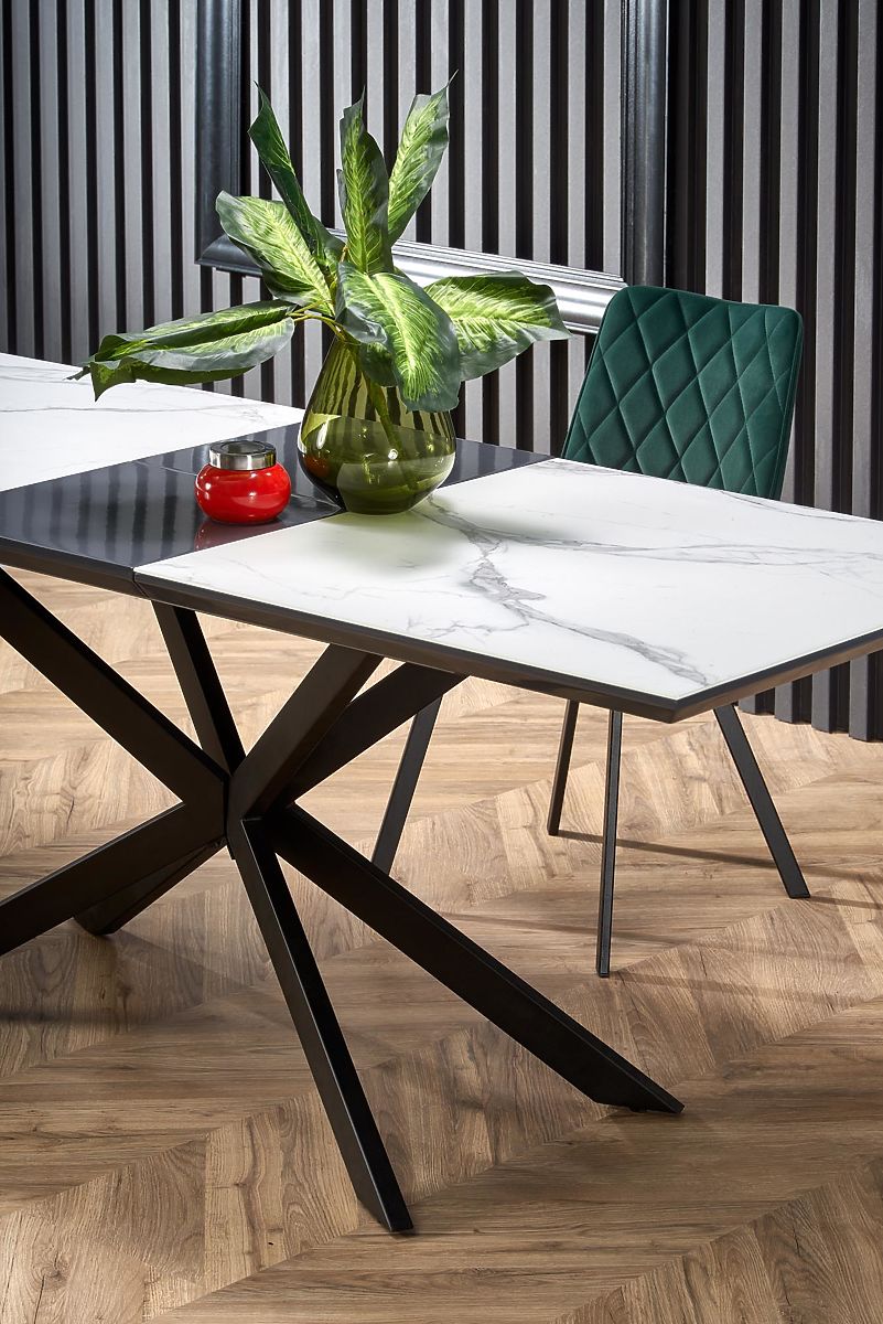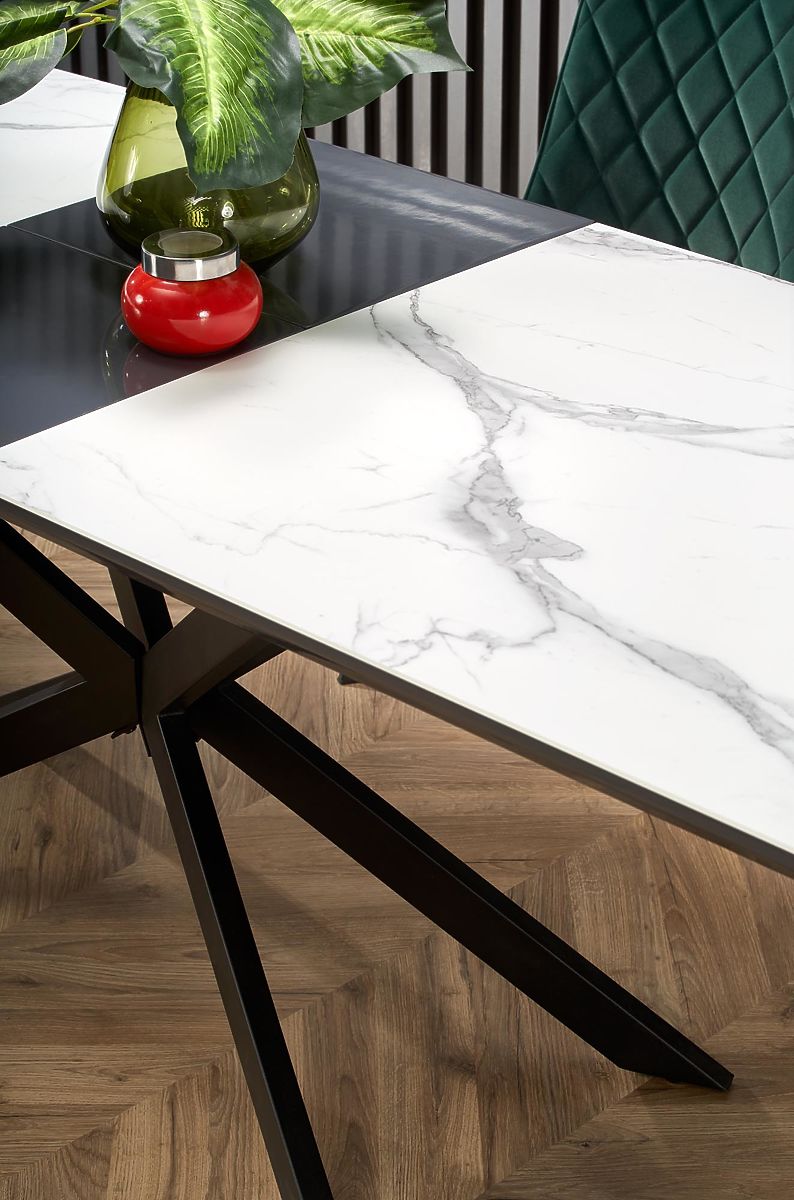 Lukahome.ro » sufragerie și bucătărie / mese tabele / Masa extensibilă DIESEL blat - marmură albă / gri închis, picioare - negru (2p=1buc)
