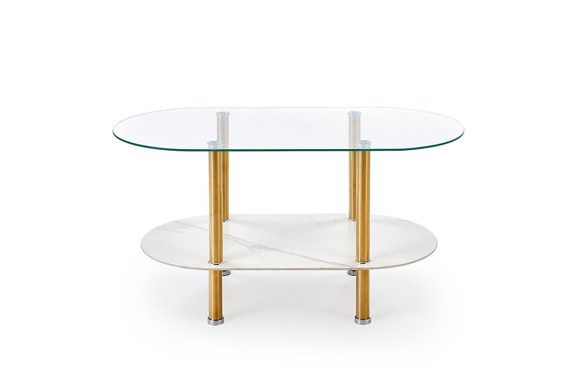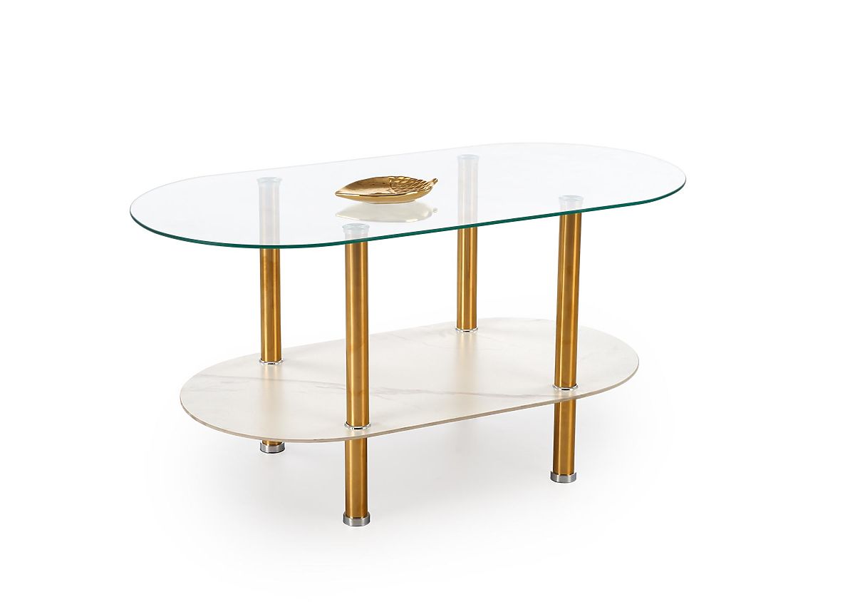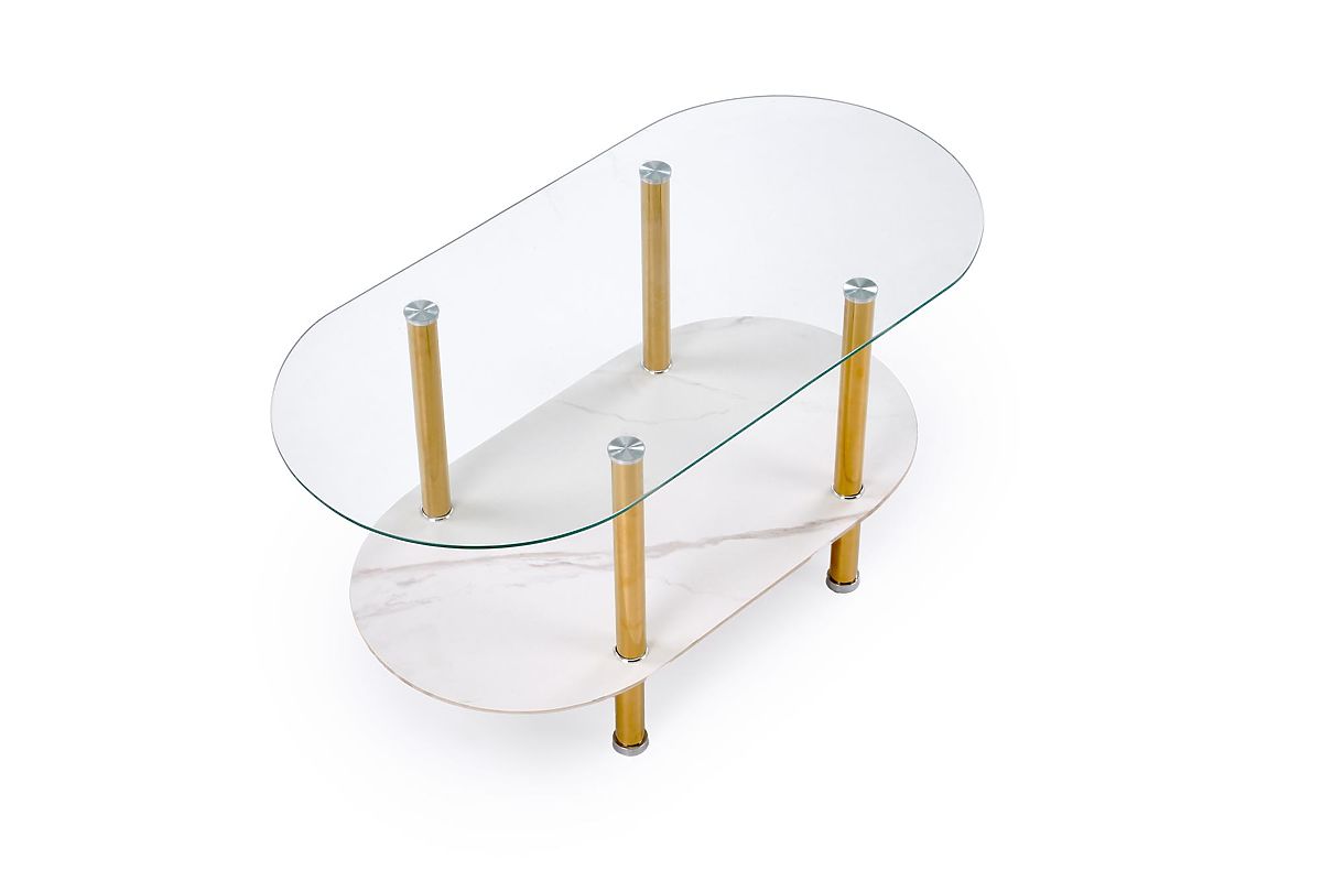 Lukahome.ro » tabele și tabele / conferință tabele / Măsuță de cafea DUCAT, marmură albă / transparent / auriu (2p=1buc)