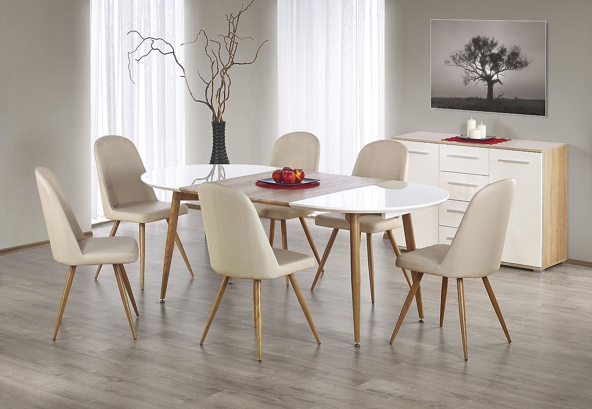 Lukahome.ro » Sufragerie și bucătărie / Mese de sufragerie / Masa extensibilă EDWARD stejar miere / alb; picioare: stejar miere (2p=1buc)