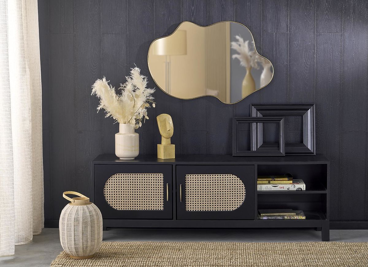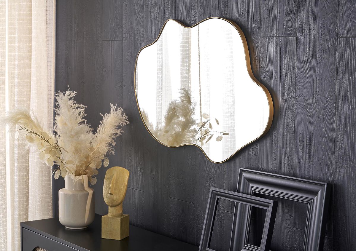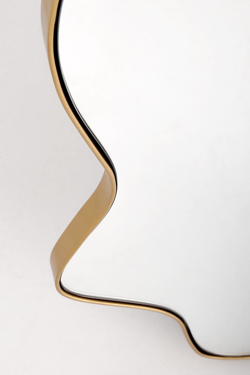 Oglindă de perete aurie cu cadru din fier periat. .. mai mult