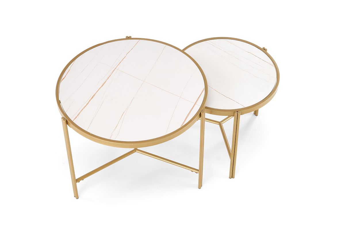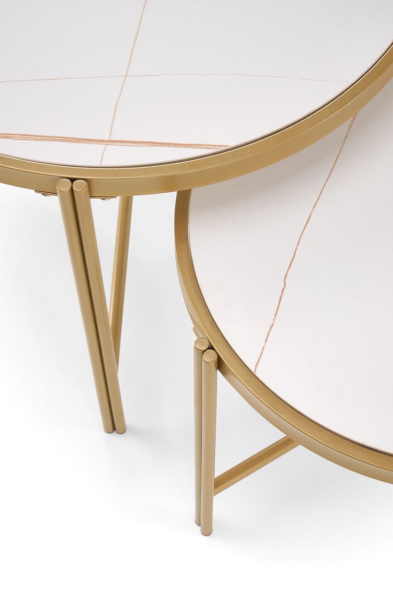 Lukahome.ro » Mese și măsuțe de cafea / Măsuțe de cafea / Set FATIMA de 2 mese, marmură albă / auriu (1p=1buc)