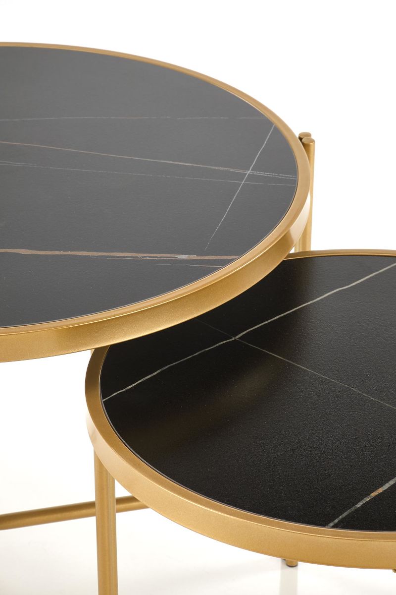 Lukahome.ro » tabele și tabele / conferință tabele / Set FATIMA de 2 mese, marmură neagră / auriu (1p=1buc)