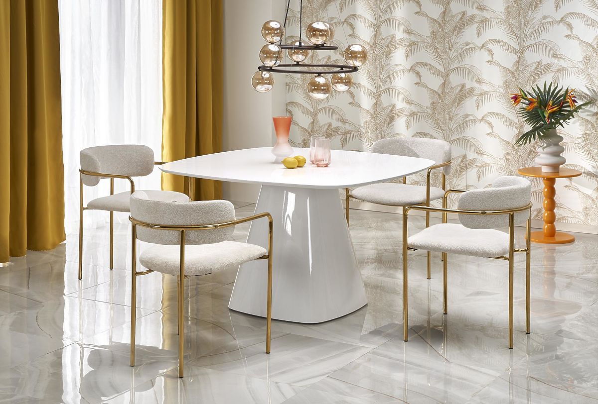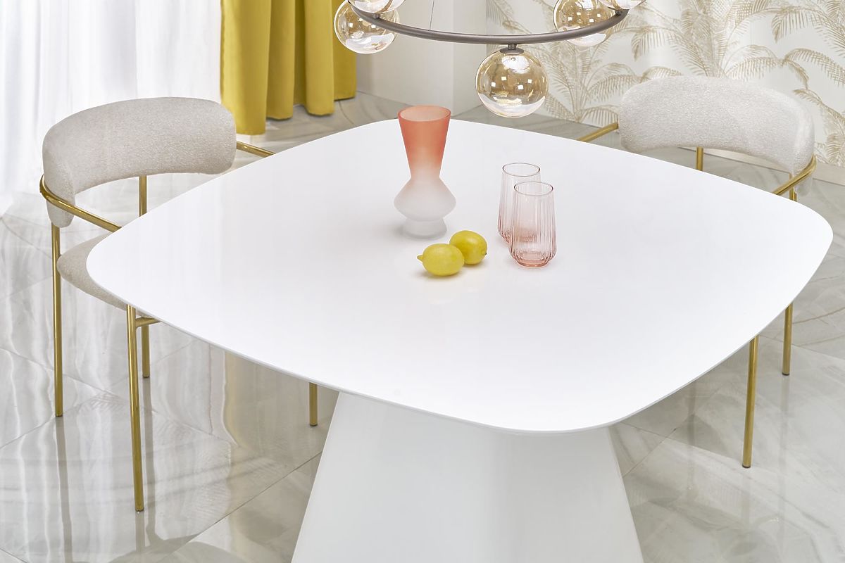 Masă albă din MDF lăcuit, dimensiuni 120/120/77 cm. .. mai mult