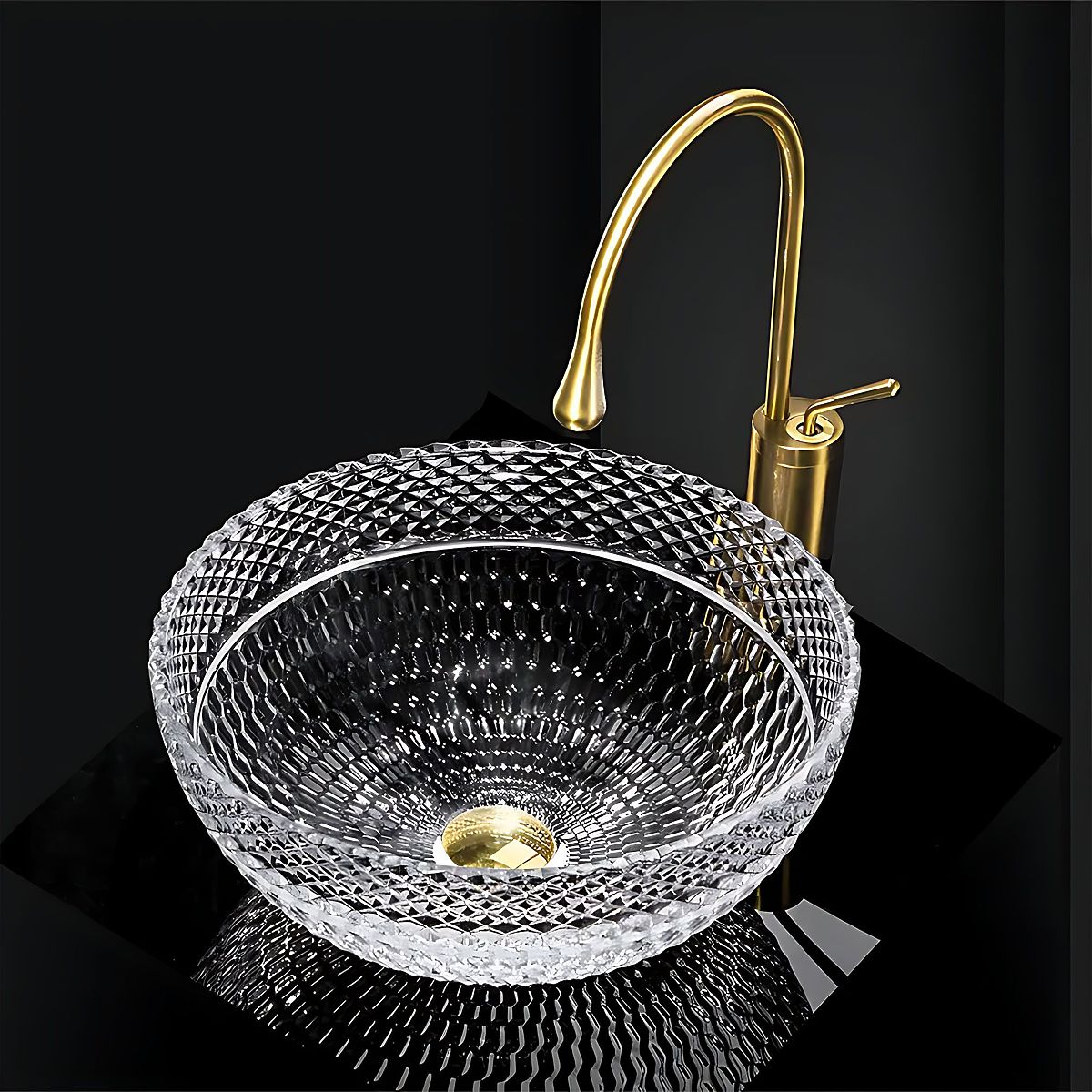 Chiuveta atemporală din cristal Sue este un element excepțional de echipament pentru baie, care îmbină eleganța cu funcționalitatea. Fabricată din sticlă securizată de înaltă calitate, impresionează prin suprafața sa decorată cu precizie, având un model de diamant efectiv, care reflectă frumos lumina și conferă interiorului un caracter luxos. Datorită construcției sale, este adaptată pentru montarea pe blat sau dulap, permițând o adaptare liberă la diverse aranjamente. Este o alegere excelentă pentru cei care doresc să adauge un stil și o eleganță excepțională băii lor.