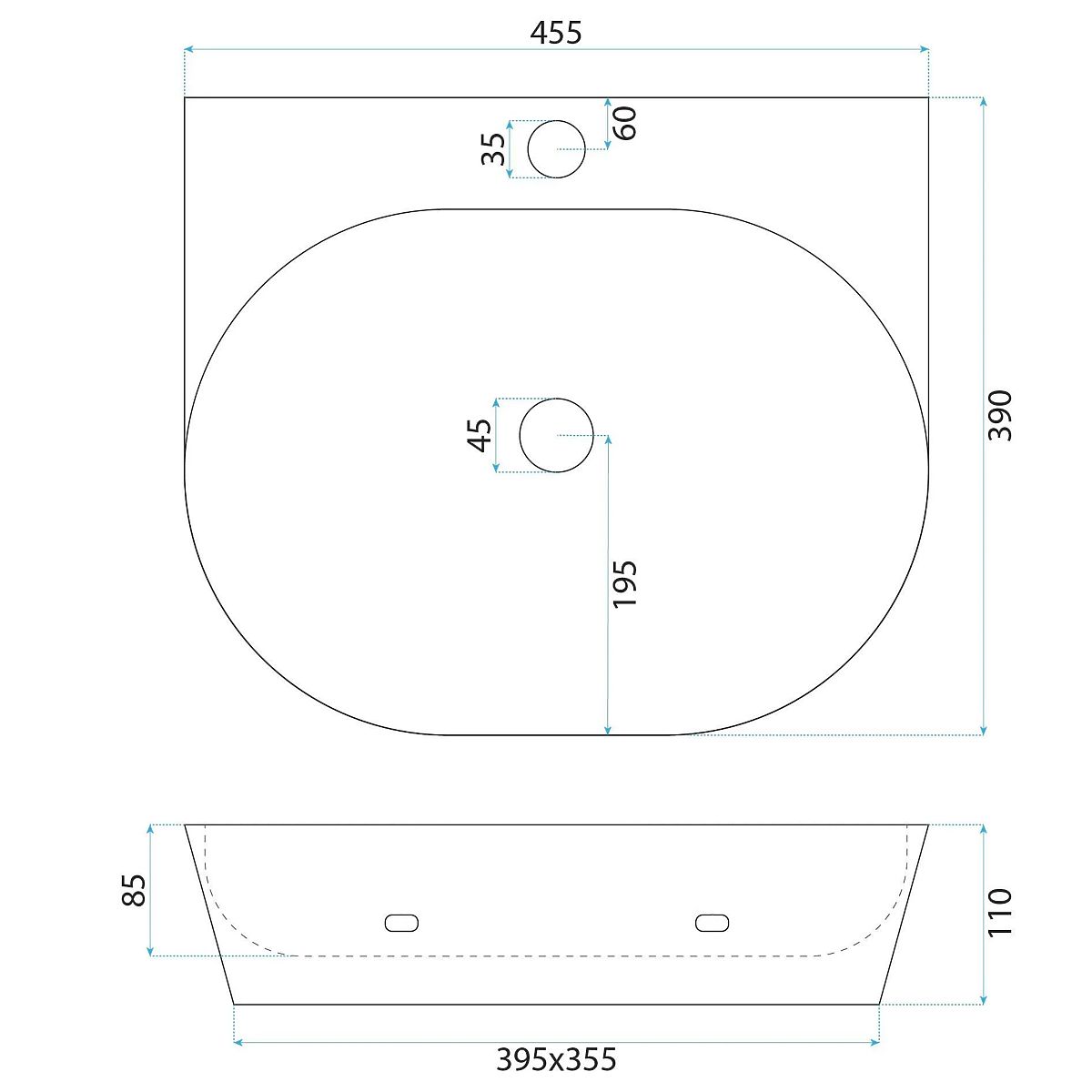 Lavoarul modern din ceramică albă este o soluție funcțională și estetică pentru orice baie. Forma sa ergonomică, rotunjită, asigură o utilizare confortabilă, iar suprafața netedă facilitează curățarea. Datorită construcției universale, acest model poate fi montat atât pe blat, cât și direct pe perete. Lavoarul are un orificiu pentru baterie, ceea ce permite instalarea rapidă a armăturii alese. Ceramica sanitară de înaltă calitate garantează durabilitate și rezistență la decolorare și deteriorare mecanică.