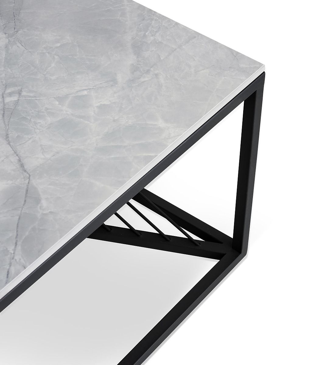 Măsuță de cafea cu design marmură gri și structură din oțel negru. .. mai mult