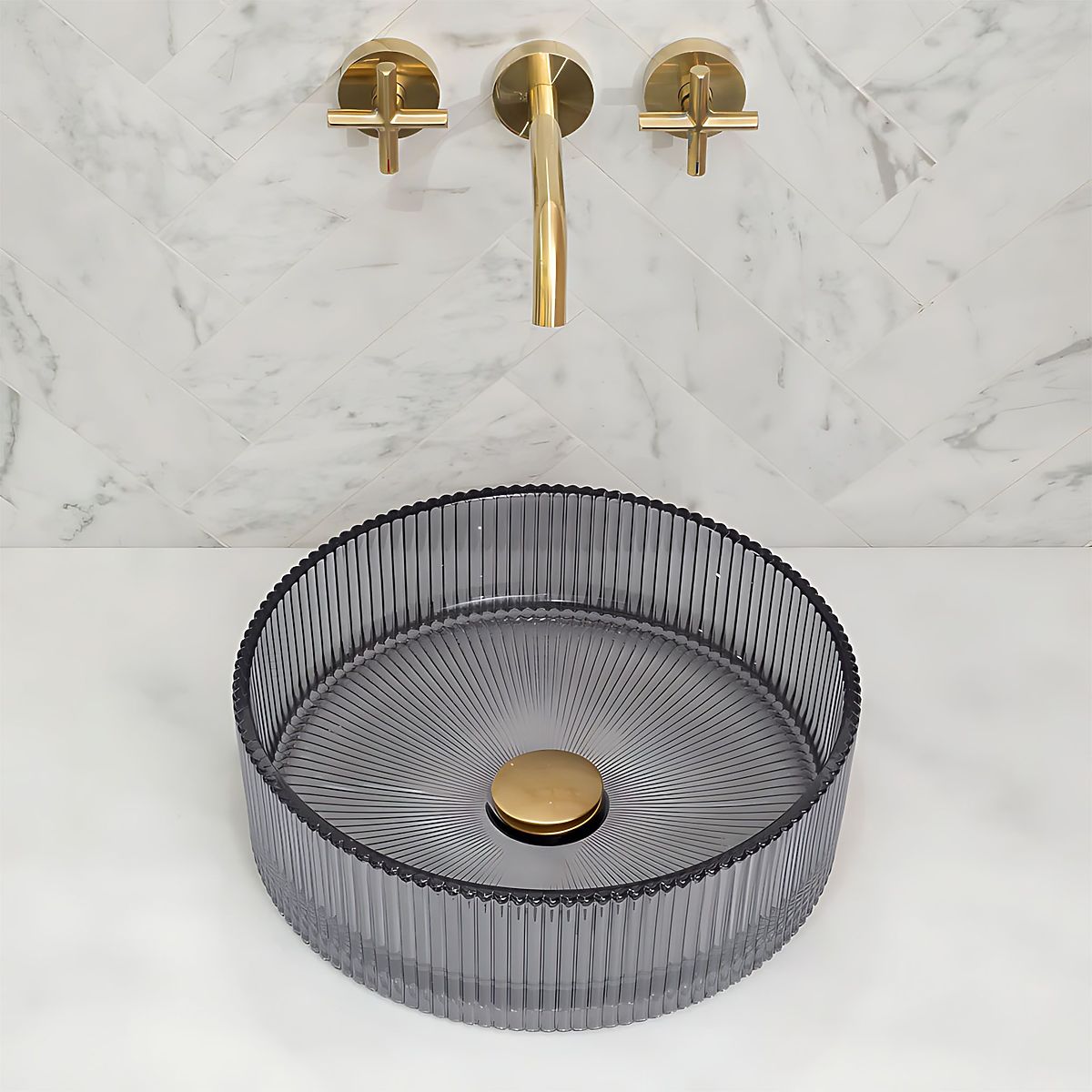 Lavoarul de mobilier Ingrid 36 este o alegere pentru cei care caută o soluție elegantă și neobișnuită pentru baia lor. Fabricat din sticlă de înaltă calitate, impresionează prin suprafața sa canelată și culoarea gri, care conferă interiorului un caracter unic și un stil luxos.