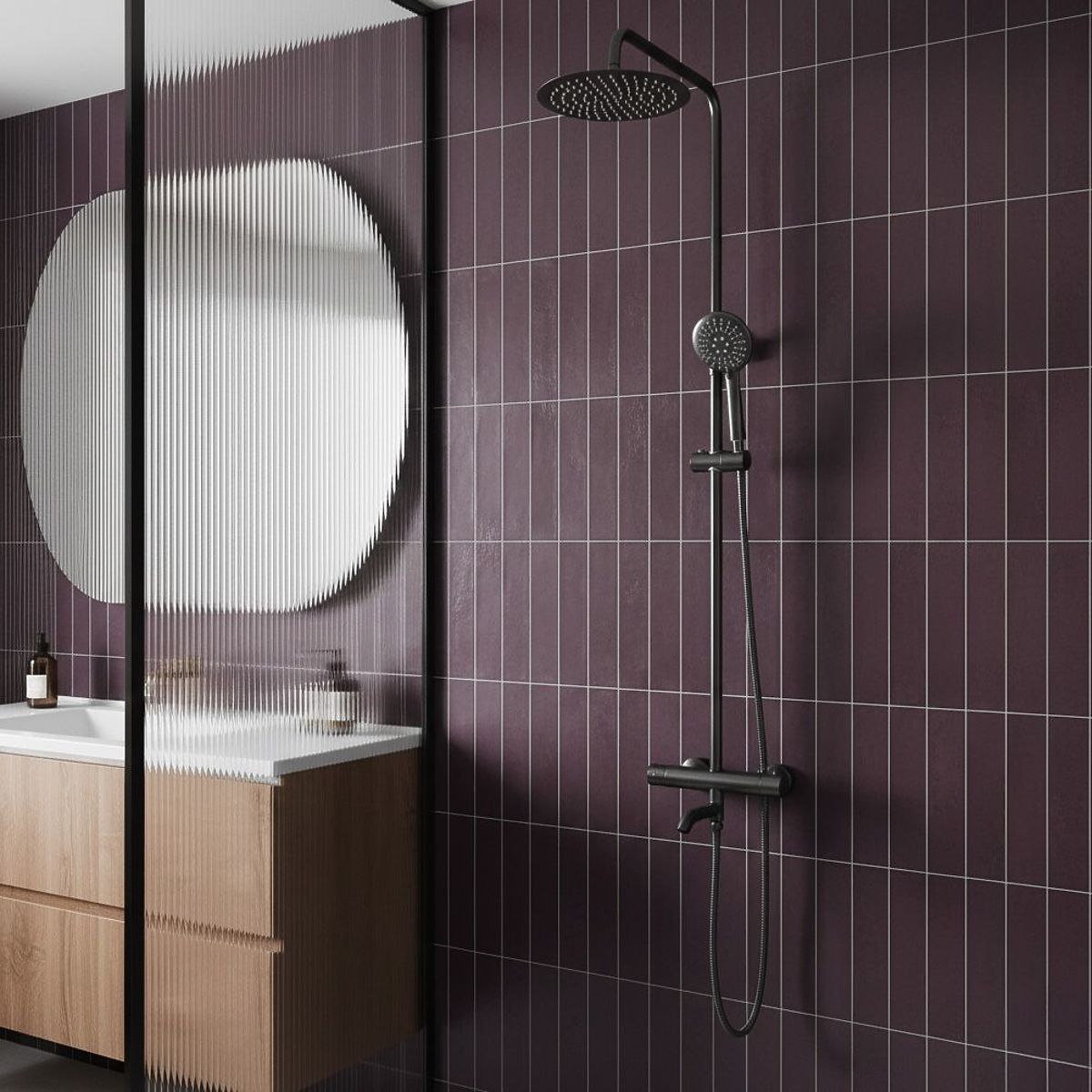 Scurgerea mobilă permite ajustarea ușoară a setărilor sale în funcție de nevoile actuale, ceea ce face ca setul să fie extrem de practic pentru utilizarea zilnică. Designul modern și liniile subțiri subliniază caracterul elegant al setului, care se potrivește perfect în băi de diferite stiluri.