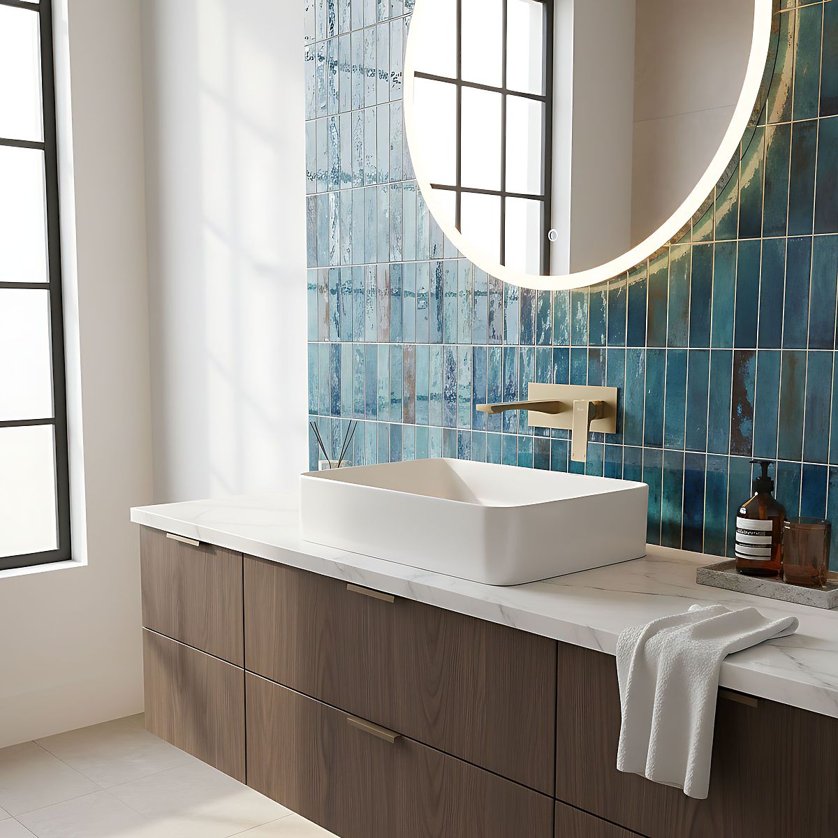Bateria de lavoar îngropată în culoarea aurie periată este destinată celor care apreciază stilul modern și eleganța atemporală. Designul său minimalist, bazat pe linii simple și execuție nobilă, asigură o potrivire perfectă atât în aranjamentele glamour, cât și în interioarele moderne.