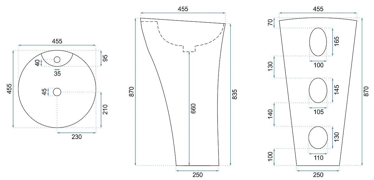 Lavoarul independent Rea Agnes are dimensiunile de 45,5 × 45,5 × 87 cm. Forma sa rotundă și designul monolitic asigură o potrivire excelentă atât în băi mari, cât și în cele mai mici. Este un lavoar ideal pentru băi unde stilul și funcționalitatea contează.