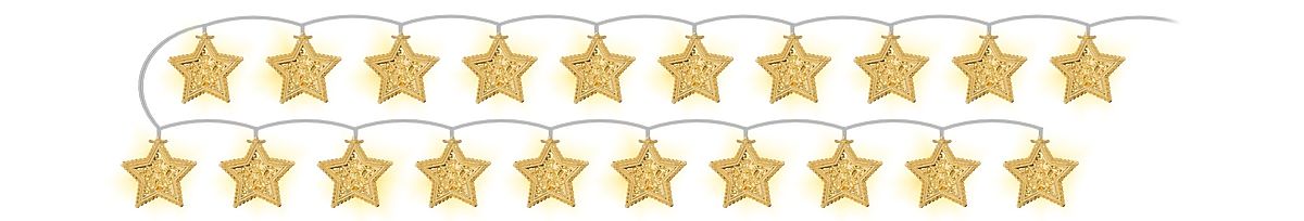 Setul de lumini constă din 20 de stele LED suspendate cu un diametru de 4,5 cm. Lungimea totală a ghirlandei este de 3 metri.