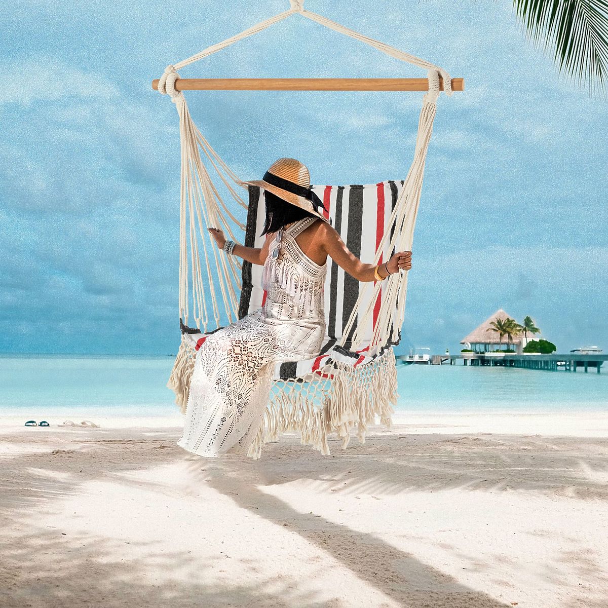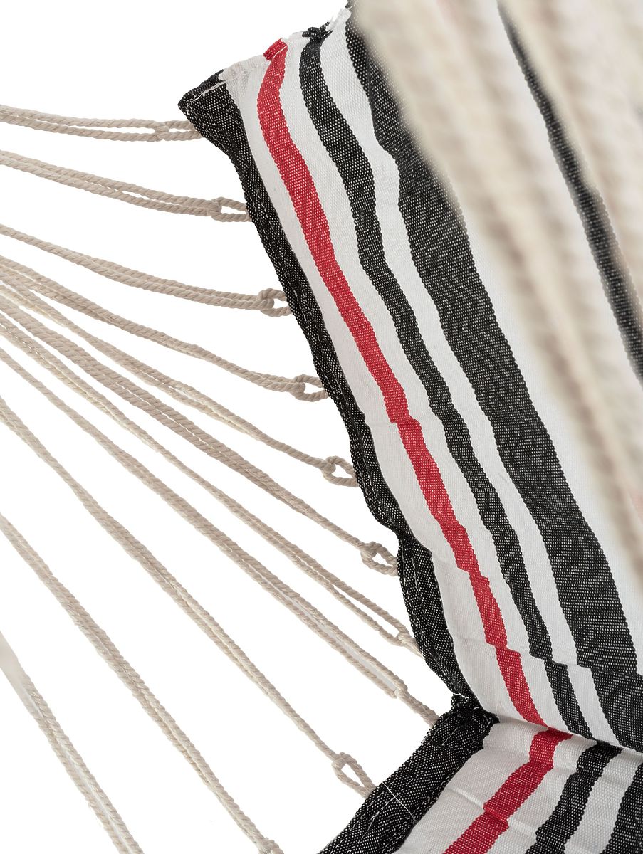 Un loc extraordinar de confortabil și de încredere pentru relaxare! Vă puteți relaxa, savura o cafea, citi o carte sau adormi. Doriți să treziți imaginația copiilor dumneavoastră și dorința de a se juca în aer liber? Comandați un hamac pentru dumneavoastră și membrii familiei! Hamacul este foarte confortabil – realizat din bumbac, se adaptează exact așa cum doriți să stați. Nu există frânghii sau cusături care să deranjeze. Pachetul include două perne, de asemenea din bumbac.