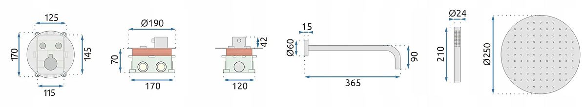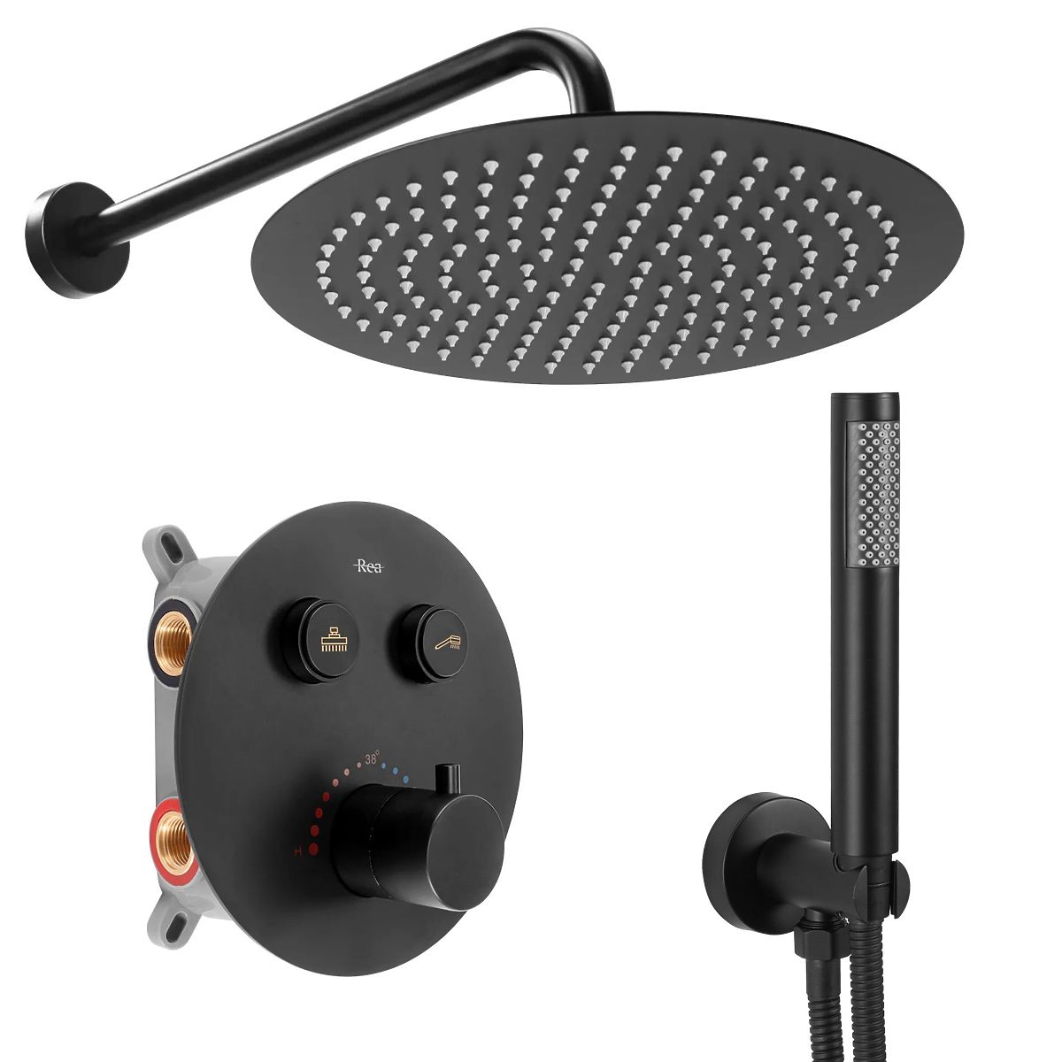Set de duș încastrat cu termostat LUNGO Negru + BOX