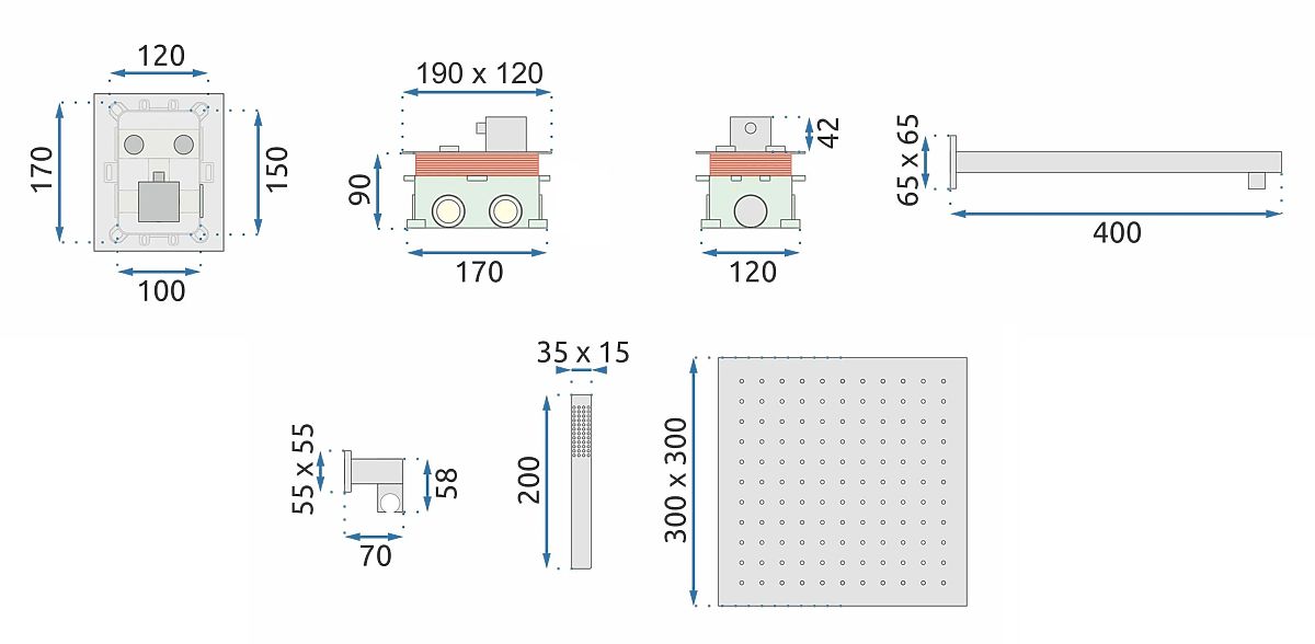 Lukahome.ro » Bathroom & Toilet / Dușuri și accesorii / Set de duș încastrat cu termostat FENIX DAVIS Auriu + BOX