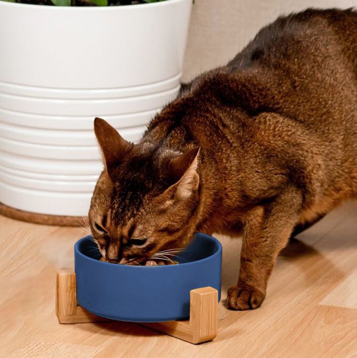 Bol ceramic albastru cu suport pentru animale de companie. .. mai mult