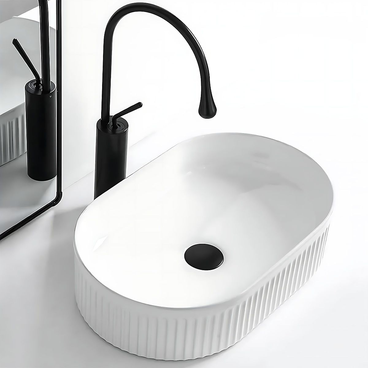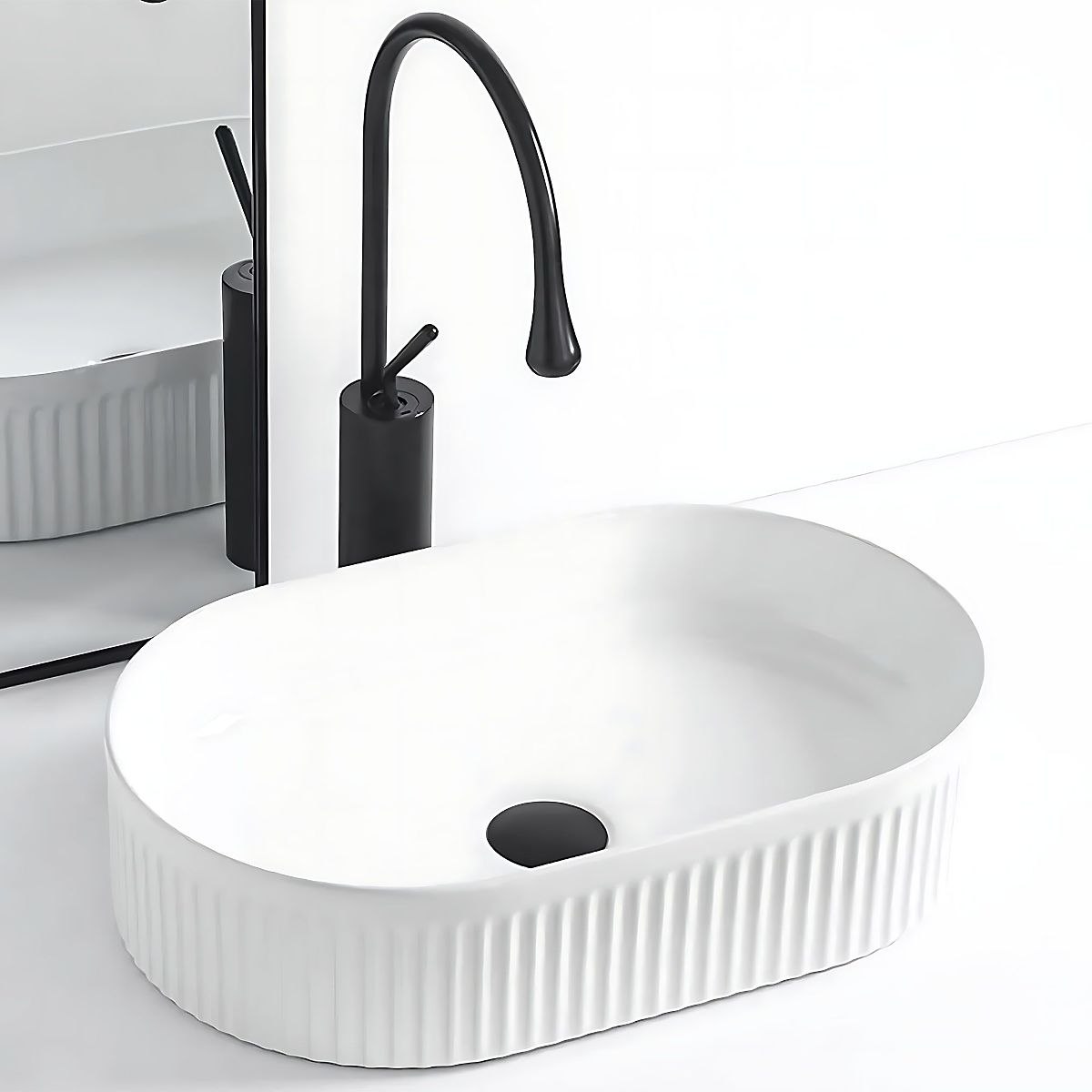Vă prezentăm lavoarul pentru mobilier care va adăuga băii dumneavoastră un aspect modern și o funcționalitate ridicată. Lavoarul este fabricat din ceramică sanitară de înaltă calitate. Suprafața exterioară este canelată, creând un efect vizual interesant și oferind băii un caracter unic.