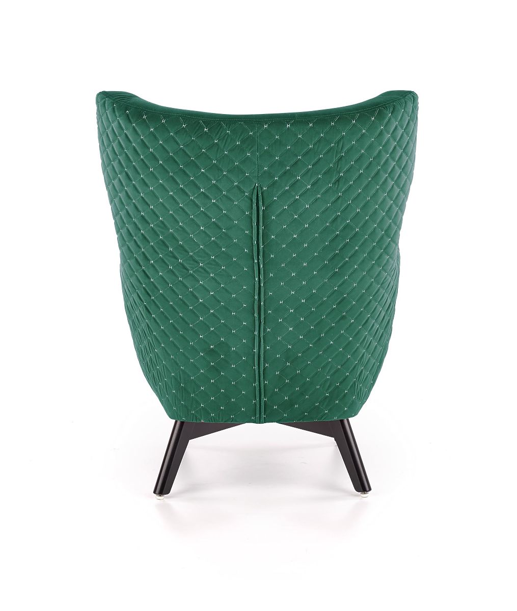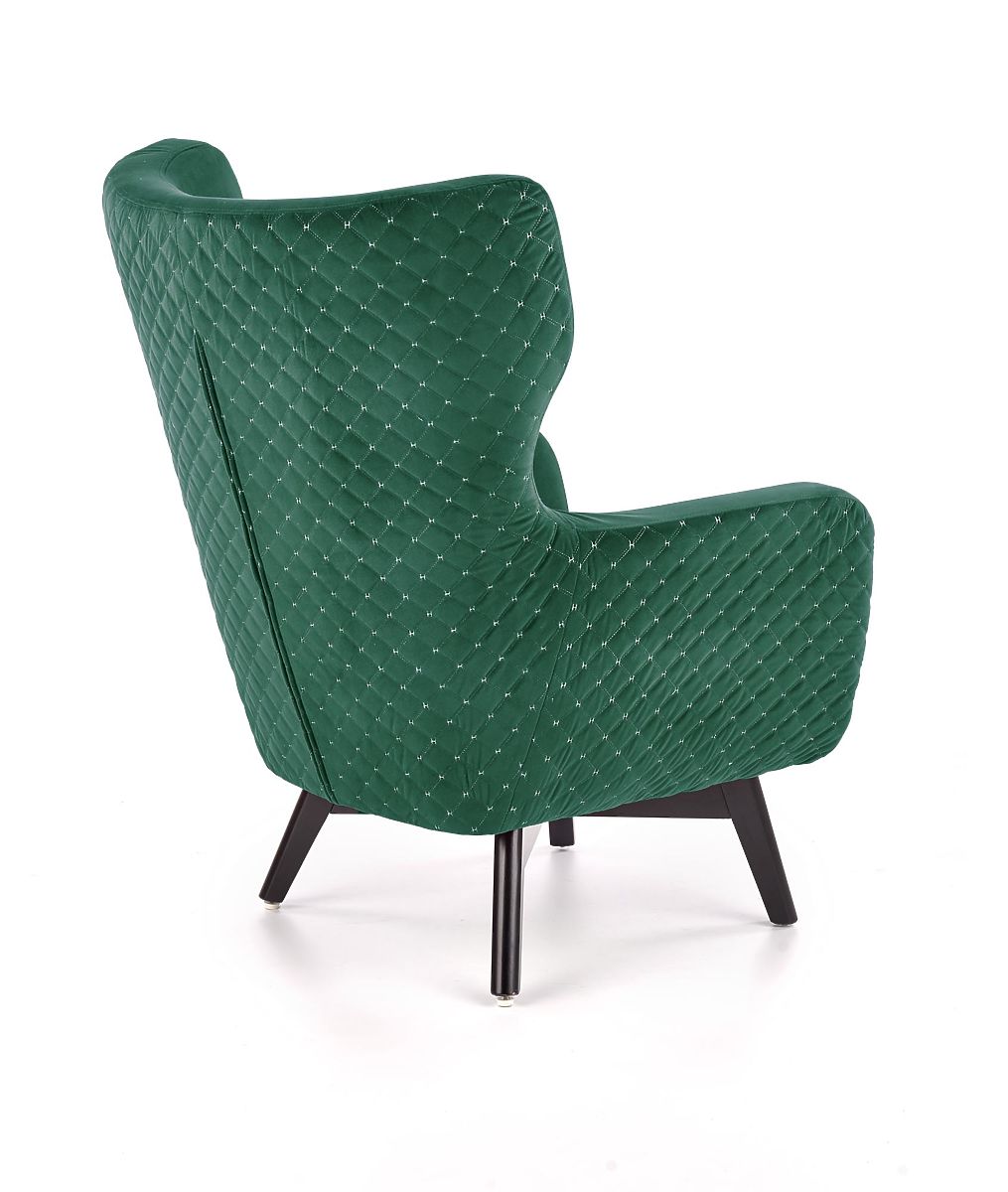 Fotoliu de relaxare cu tapițerie verde închis și picioare negre. .. mai mult